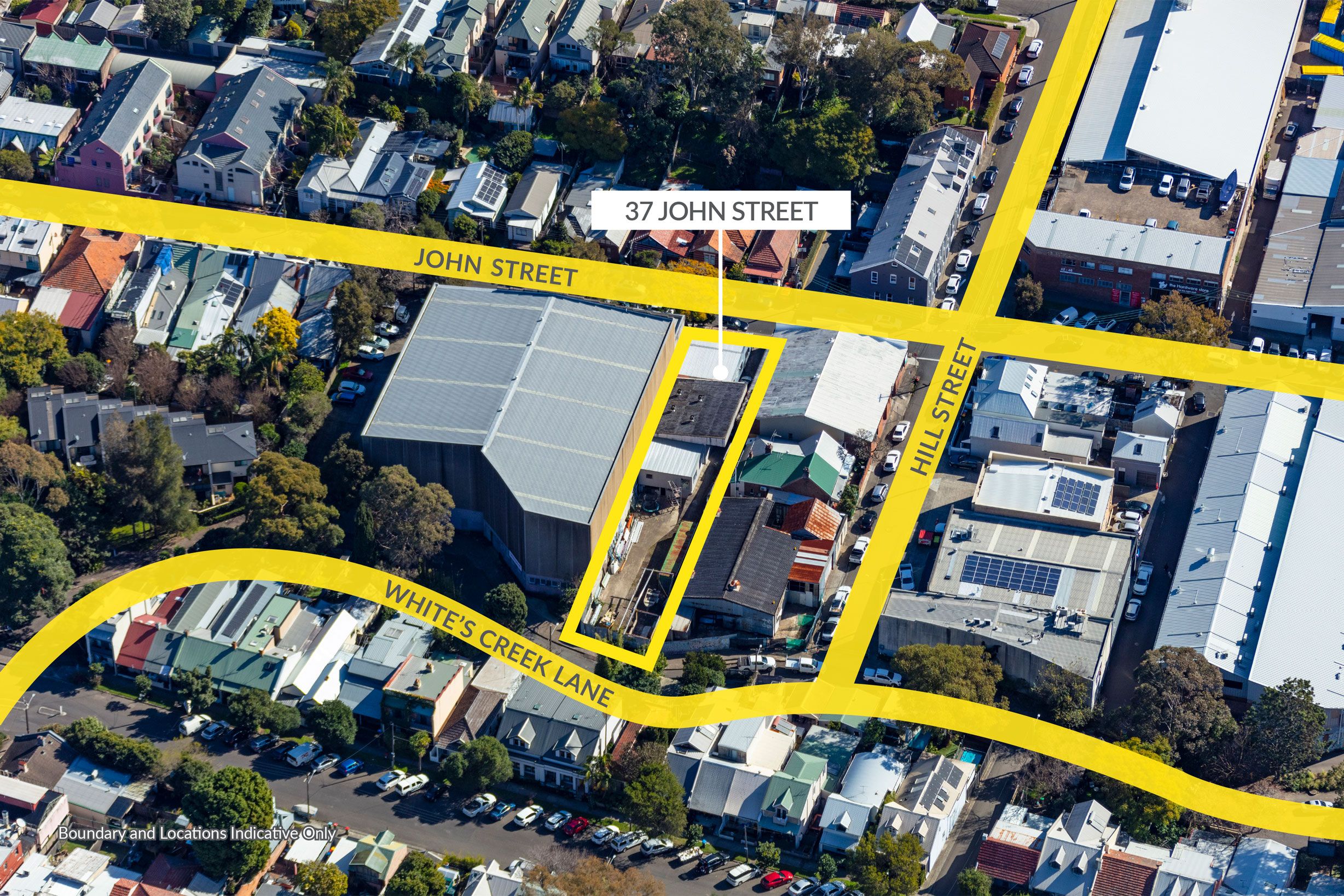 - Dual street frontages: John Street and Whites Creek Lane