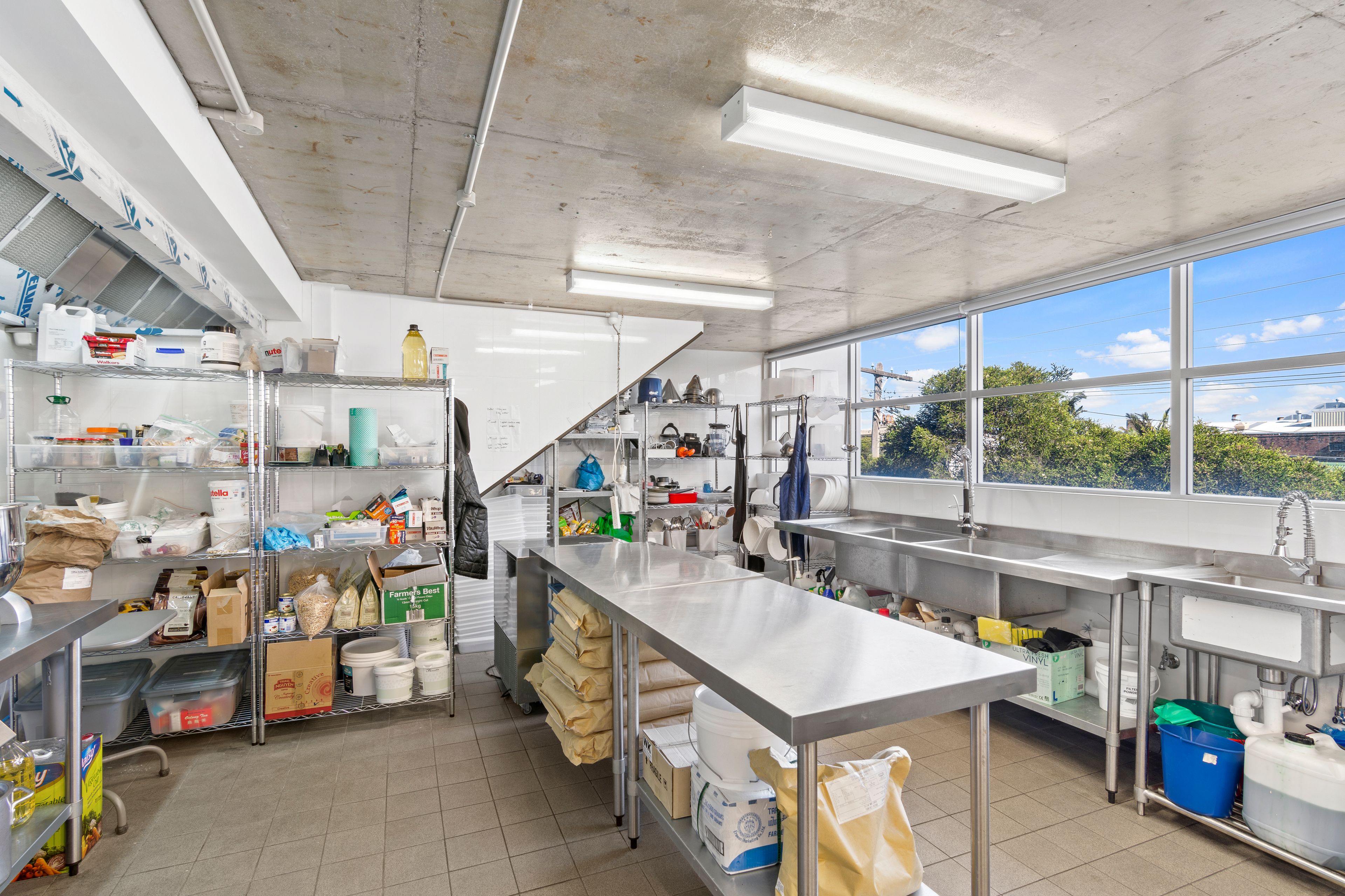- Industrial strata unit 154sqm* with commercial kitchen area including range hood and sinks