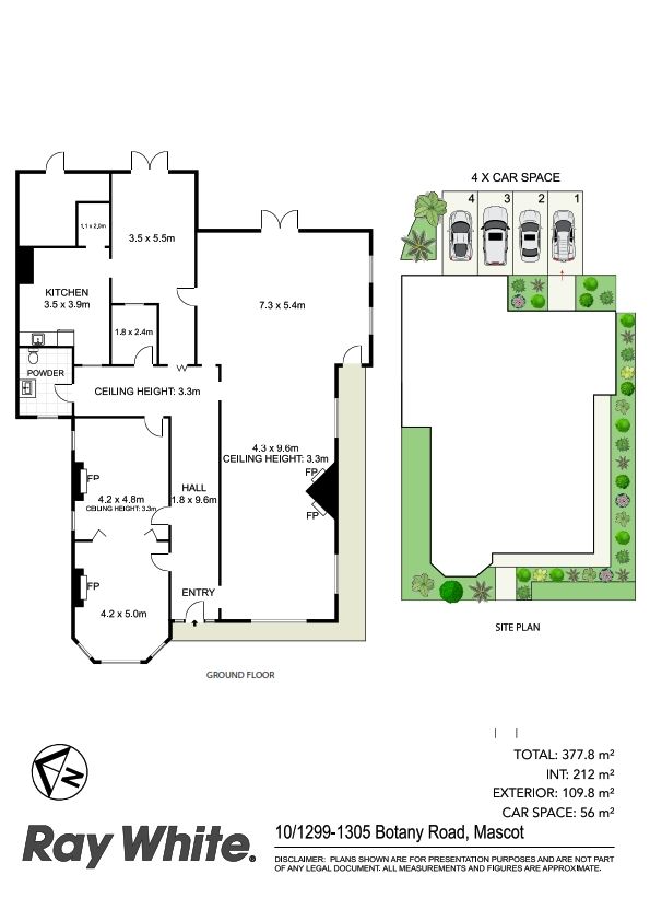 - 377.8 sqm on title (internal & external) includes front garden