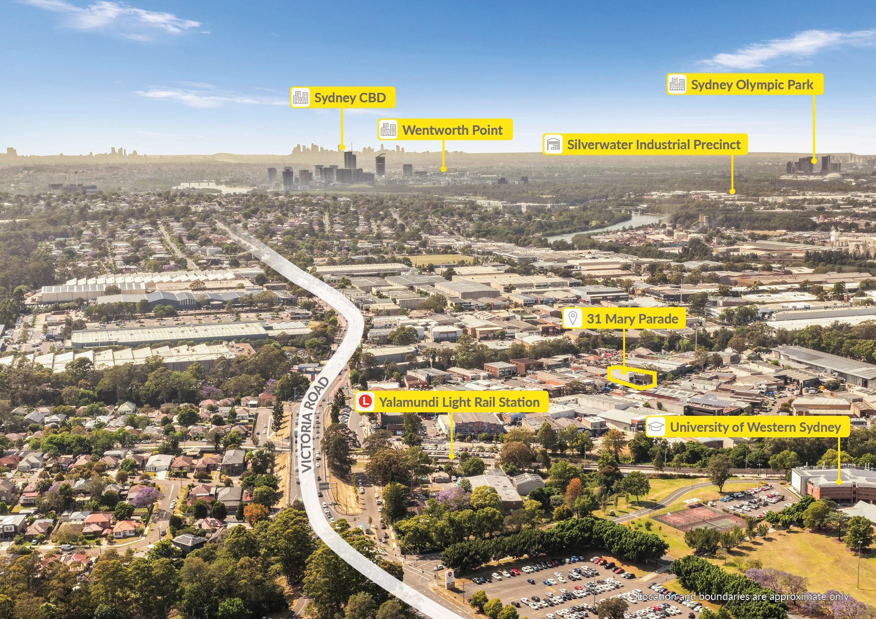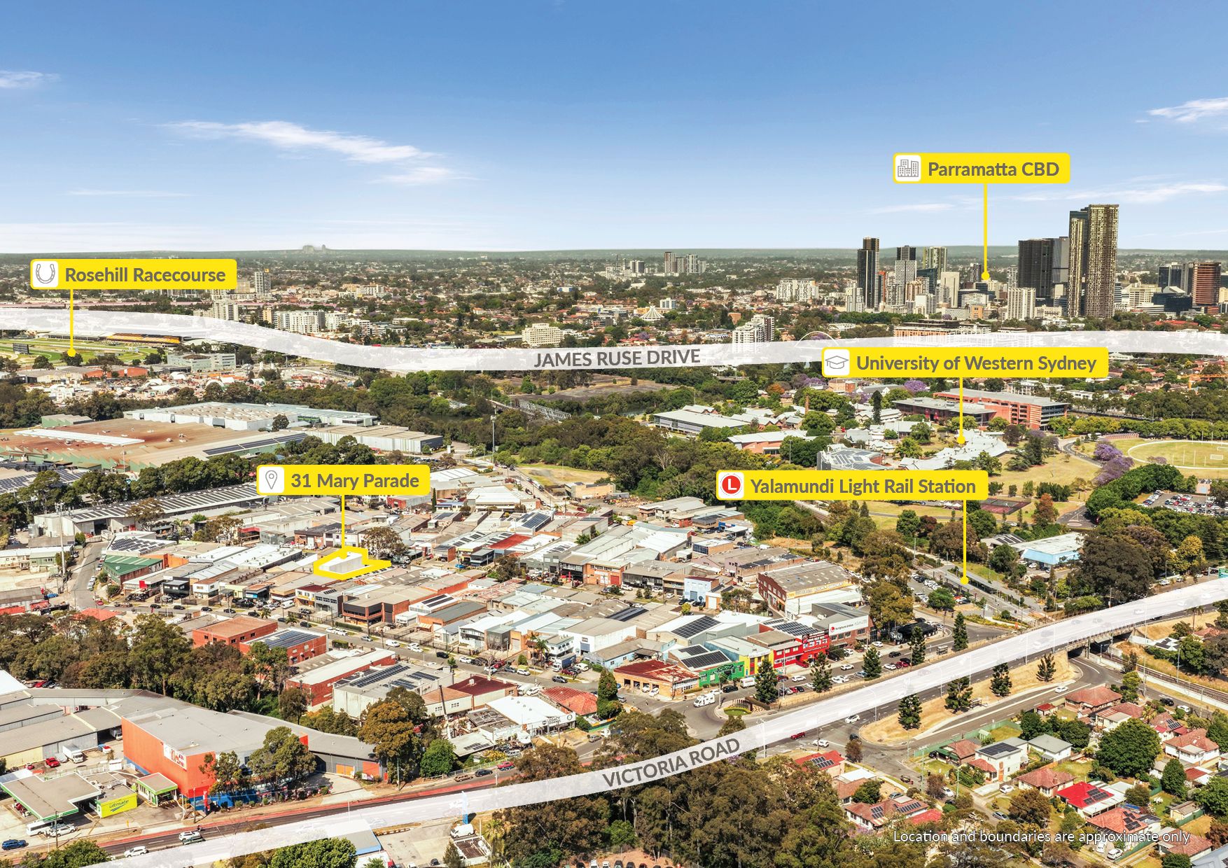 Strategically located just minutes from Sydney's major arterial roads, Victoria Road, James Ruse Drive, Parramatta Road, Silverwater Road & moments to the M4 Motorway.