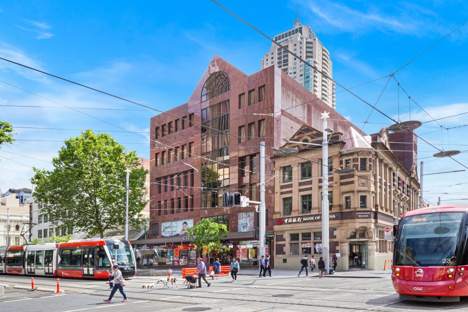 In the financial sector of Haymarket surrounded by HSBC, Bank of China, ANZ, Westpac and Commonwealth Bank