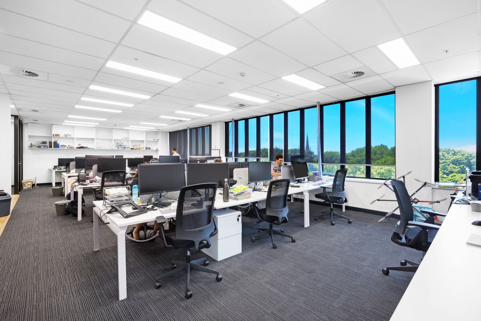 - Large open plan room with workstations and chairs