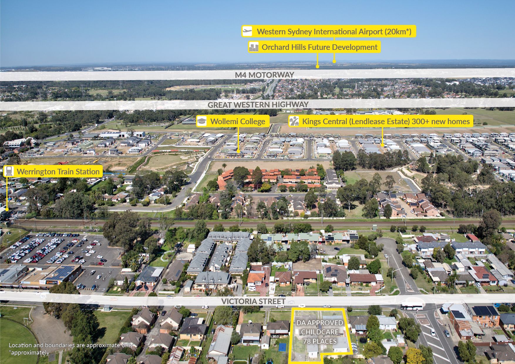 Ideal for childcare operators or developers to benefit from the area's growth, driven by the upcoming St Marys Metro (completion in 2025), the Kings Central development by Lendlease and Western Sydney Airport, just 25 minutes* away.