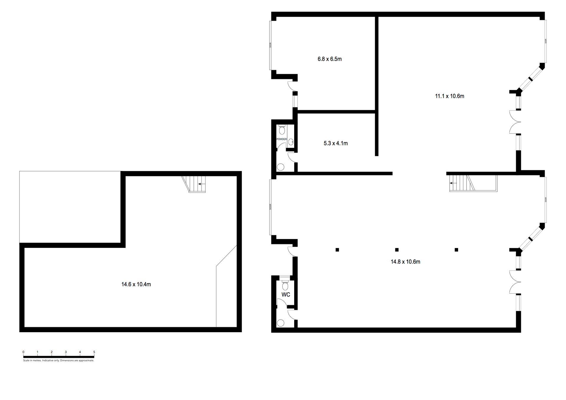 * Kitchenette, 2 x W.C