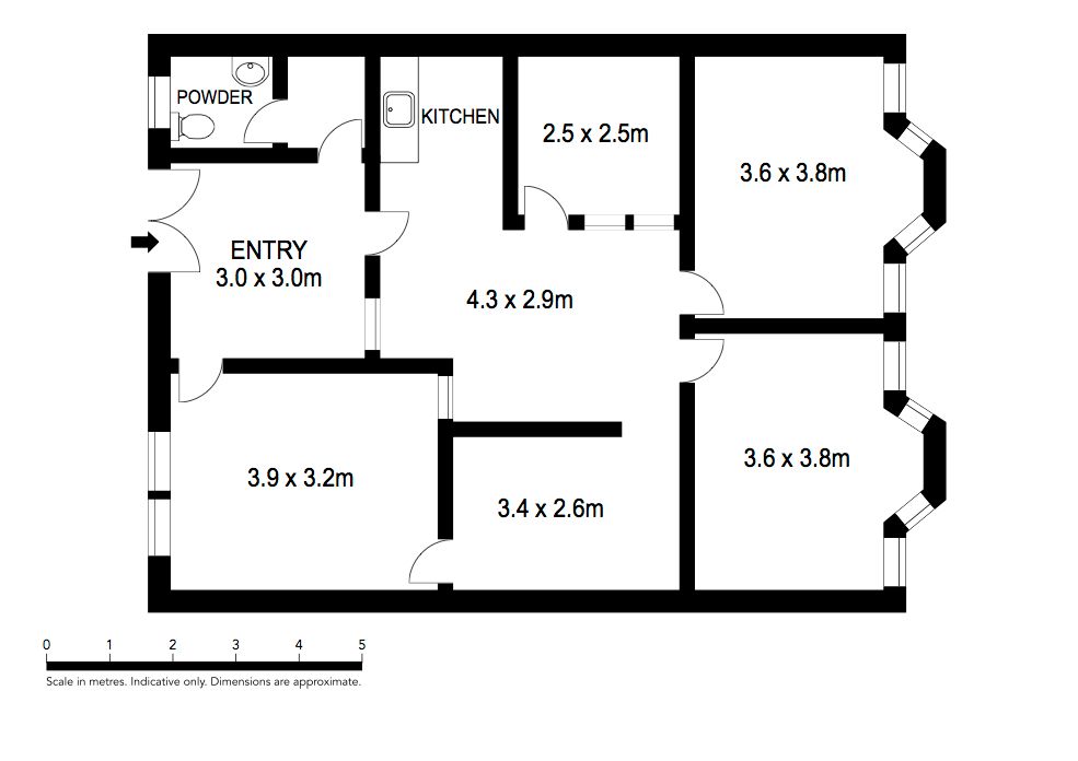 * 1 x office 2.8 x 3.3 metres approx.