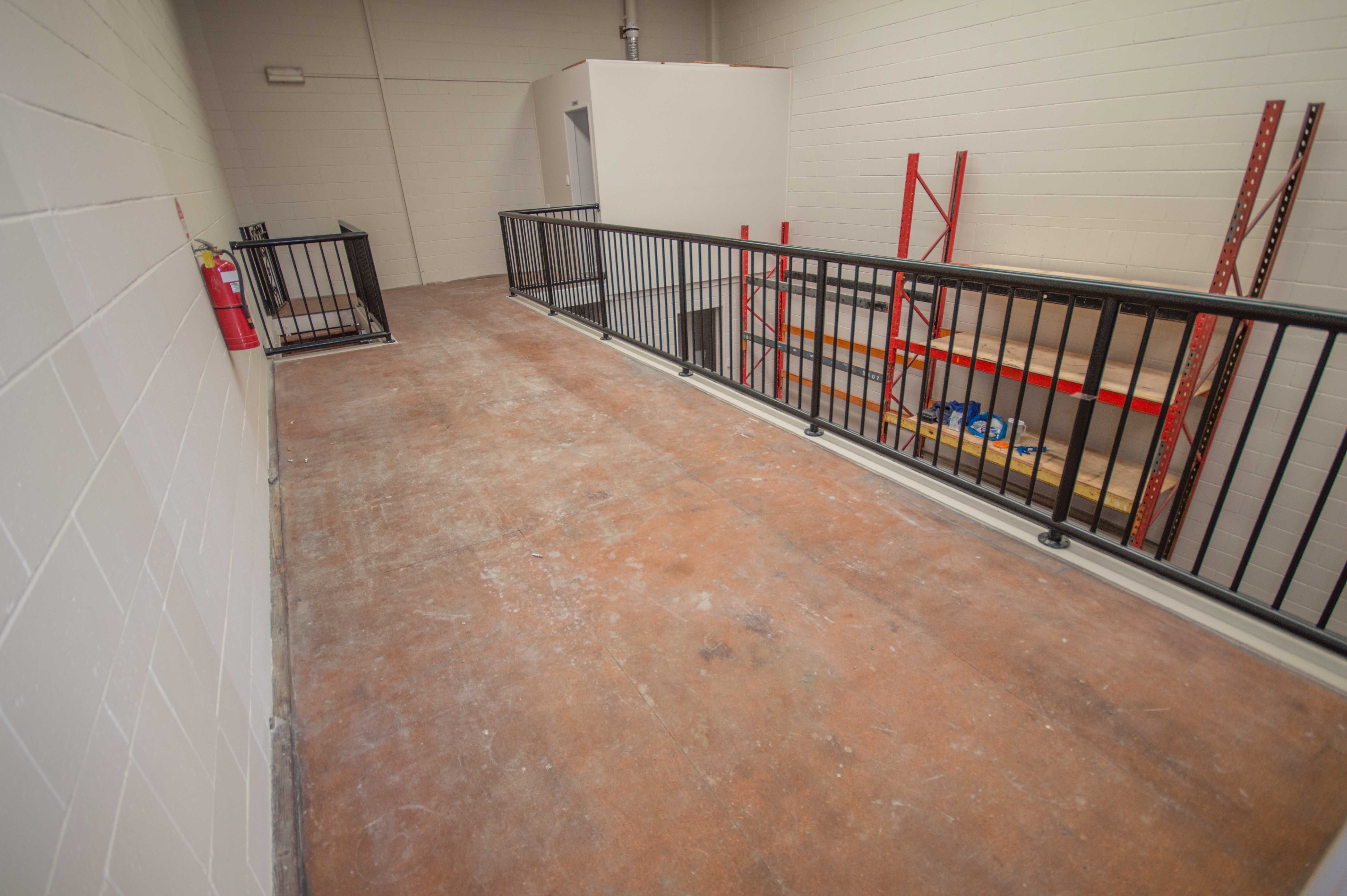 * Reception with glass entrance door, upstairs mezzanine office