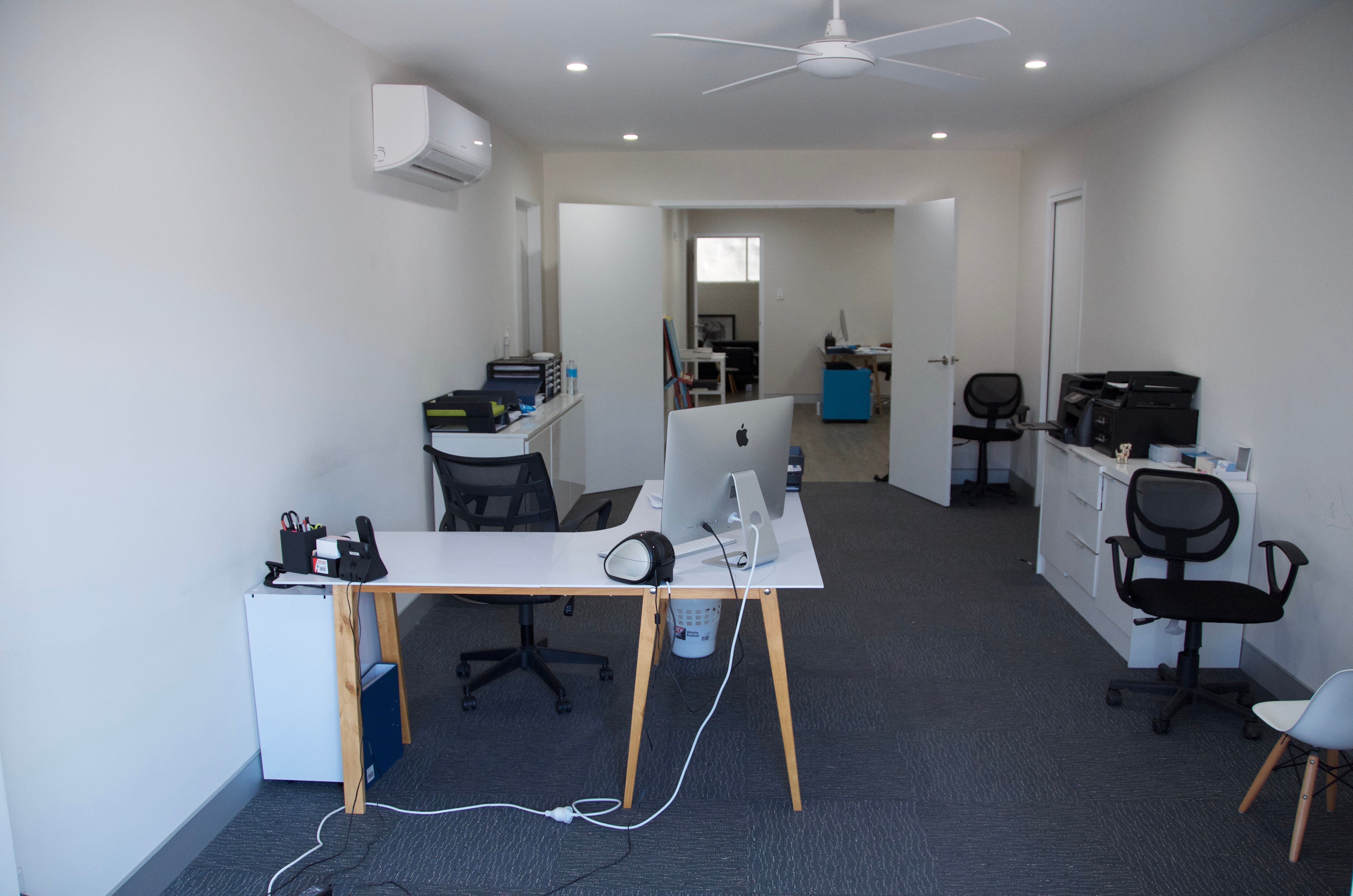 * Modern office fit out with air conditioning and an additional office level on mezzanine