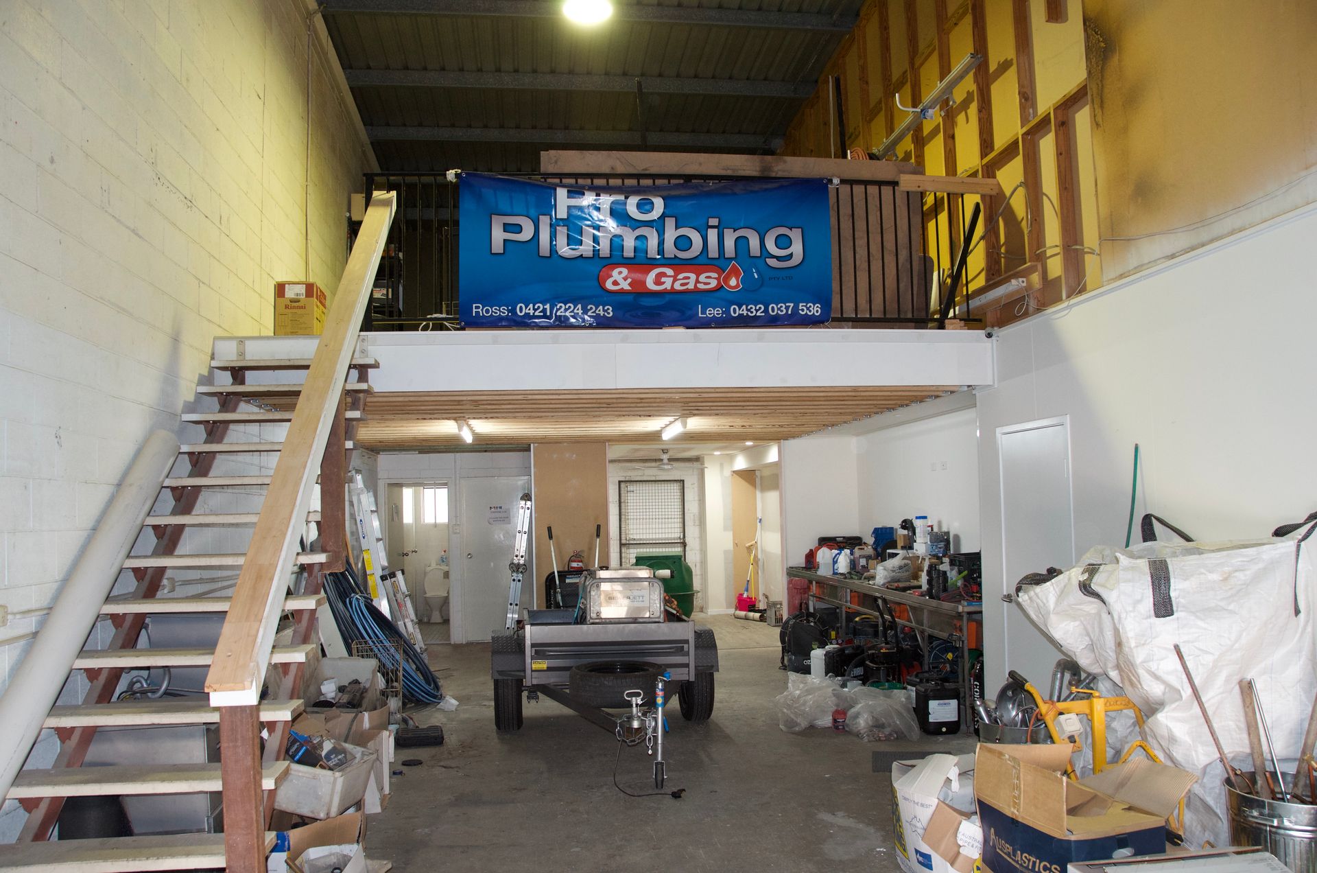 * Warehouse with mezzanine level for storage