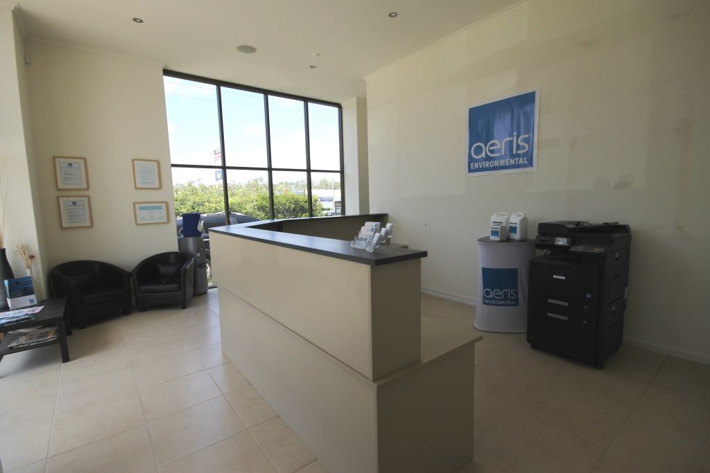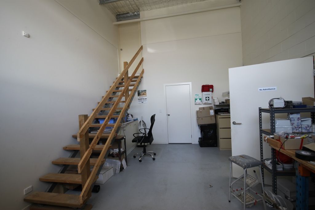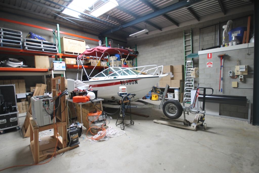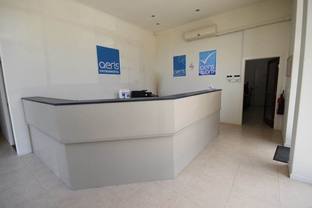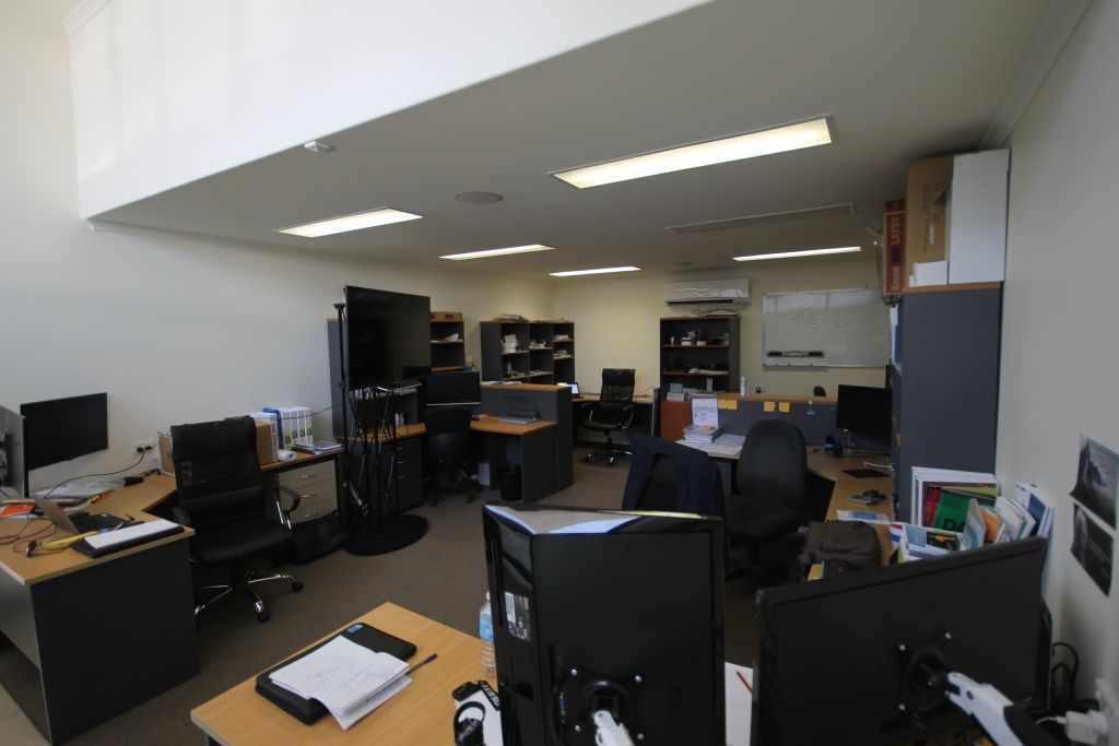 - Contains reception and boardroom, open plan office area, work area/storage and warehouse with roller door