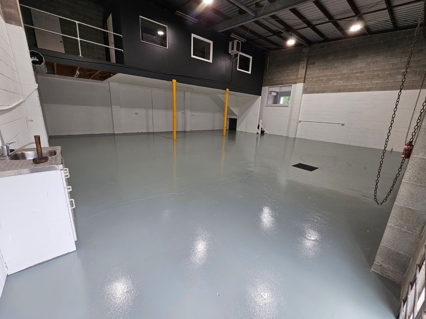 - 40sqm* mezzanine office at rear of factory/warehouse