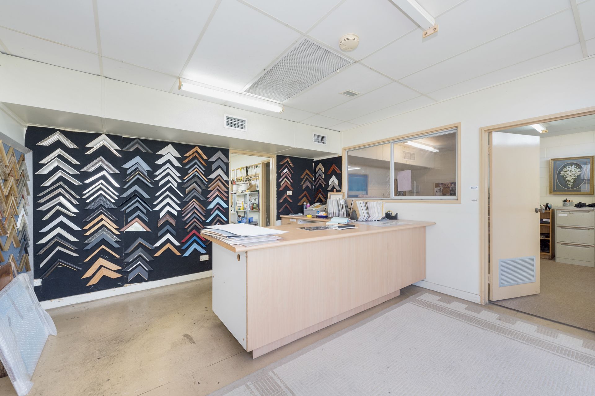 • Office layout includes reception, 3 offices, lunch room, and large open plan area