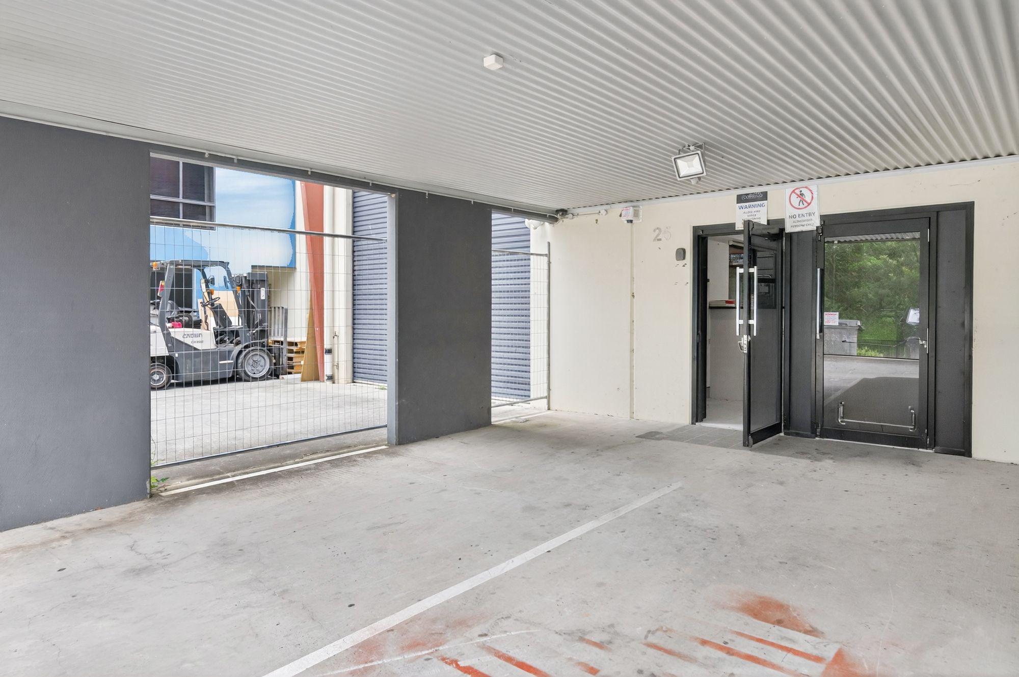 • Spacious high-clearance warehouse with container-height automatic roller door access