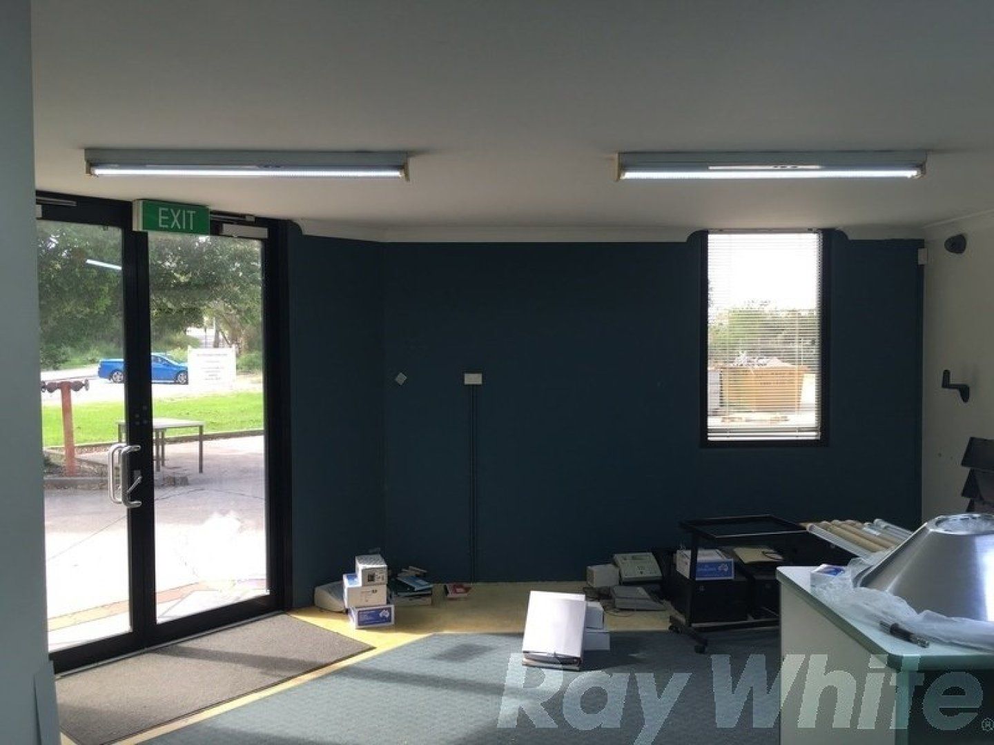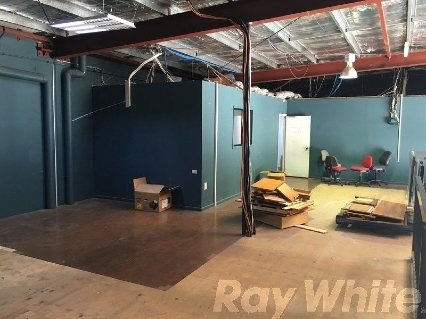 - Board room, open plan work area, 4 partitioned offices