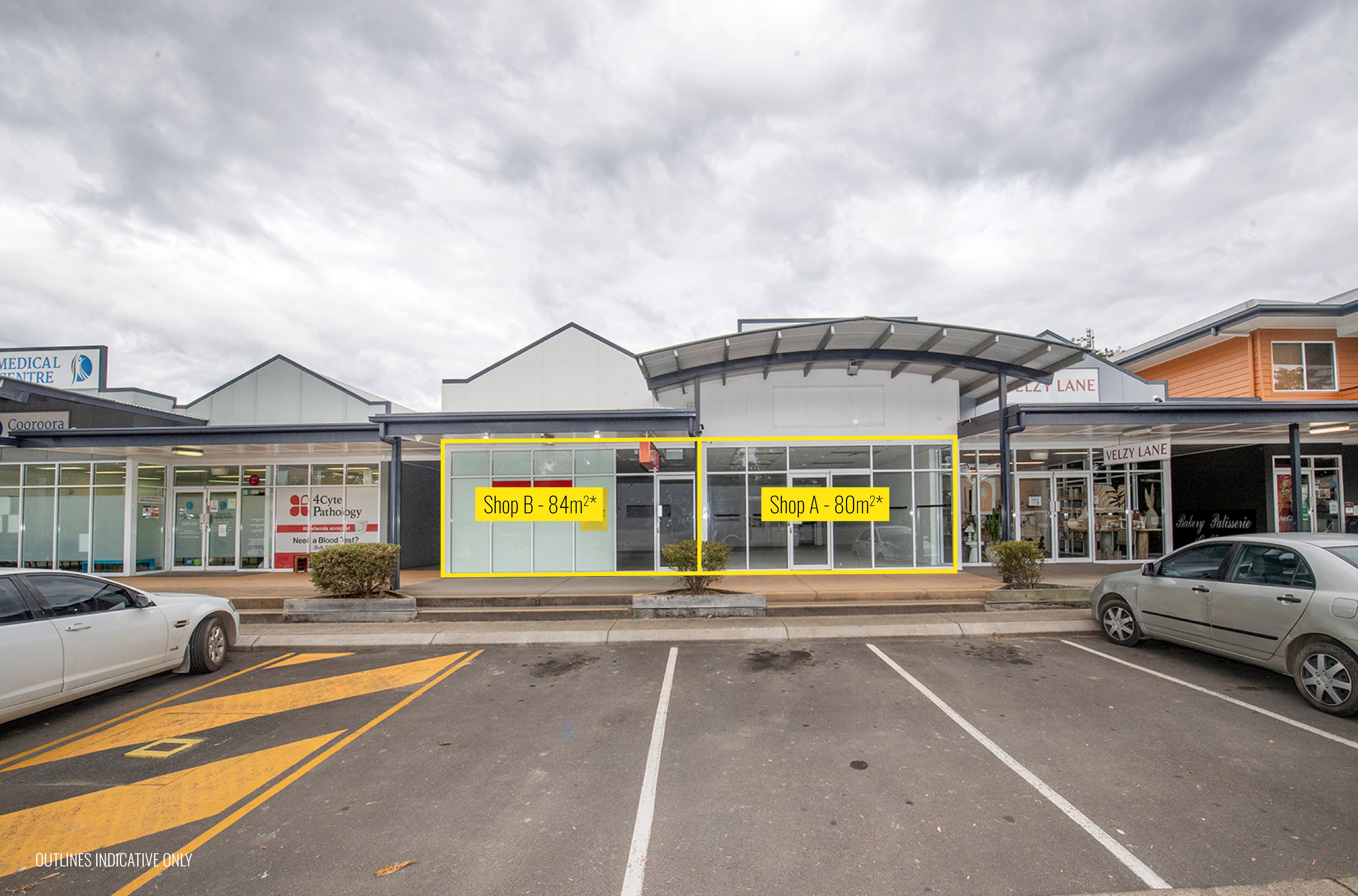 • Option to lease just Shop A (80m²) or Shop B (84m²*)
