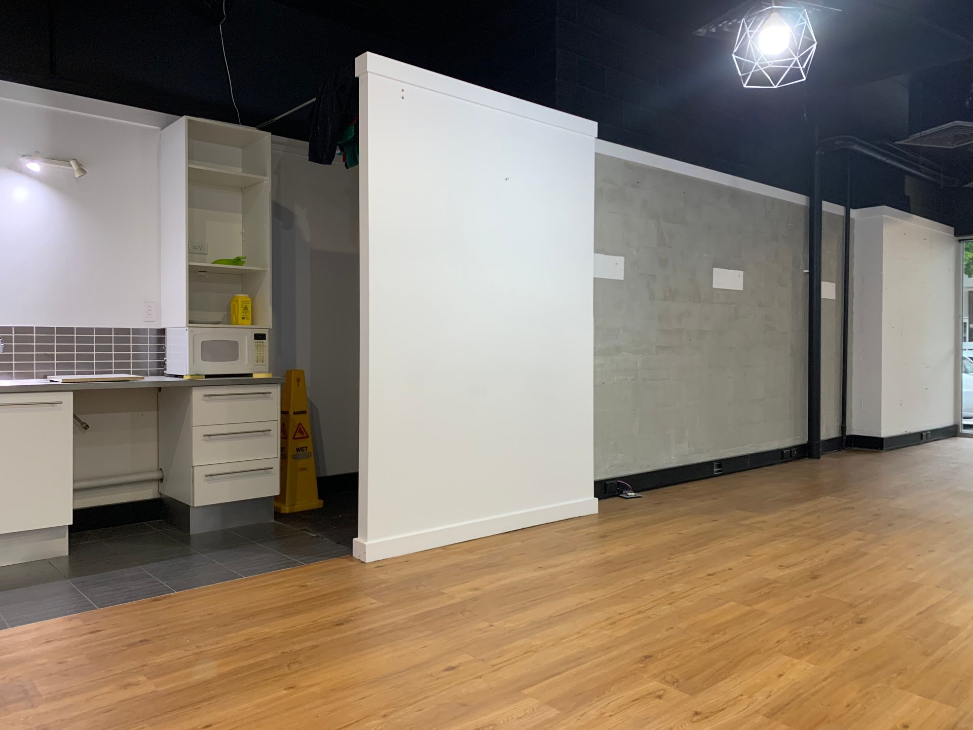 * Open plan with its own kitchenette/storage area