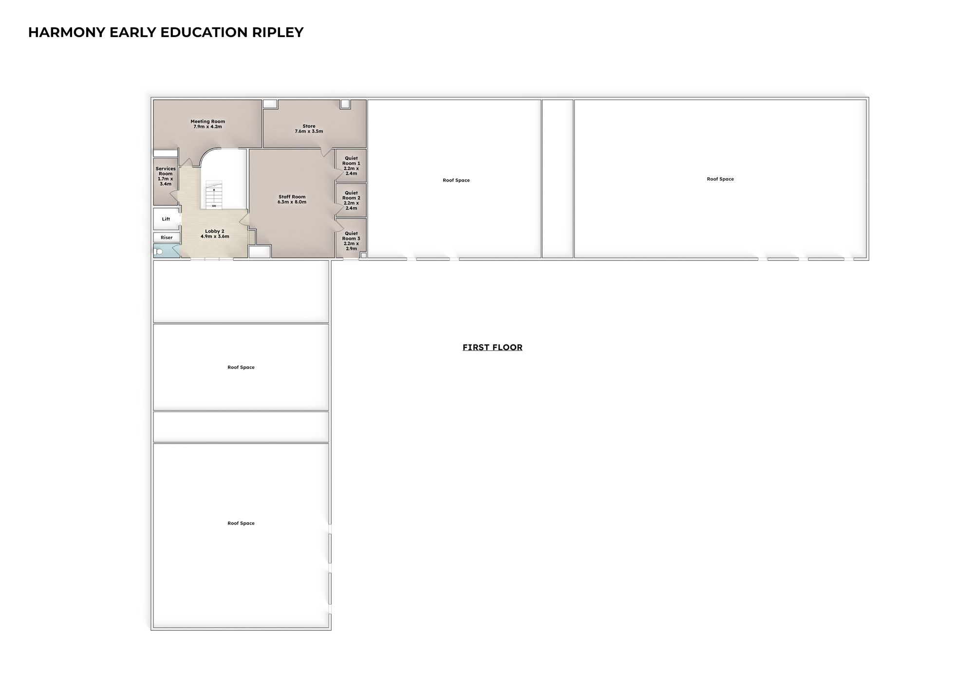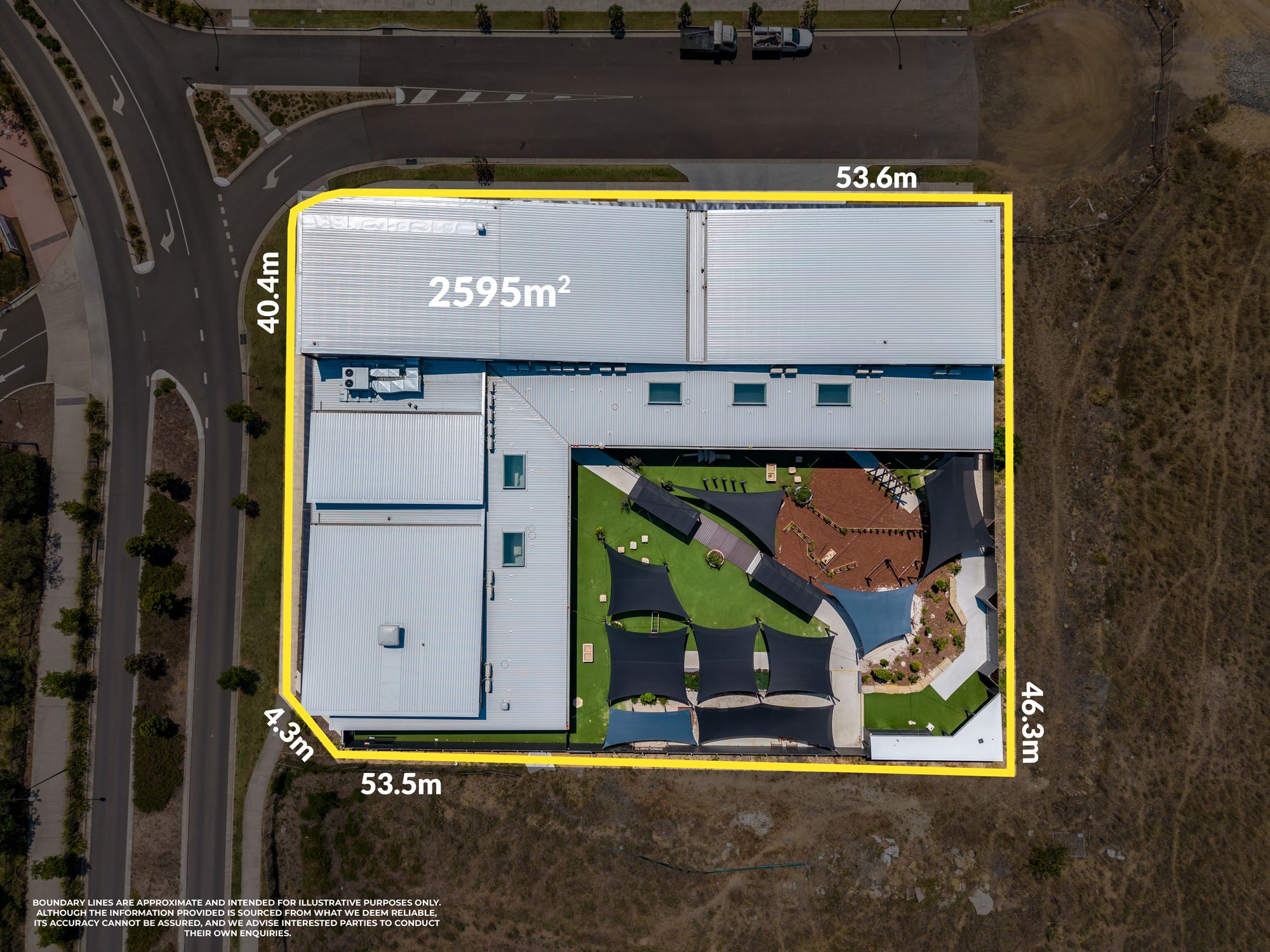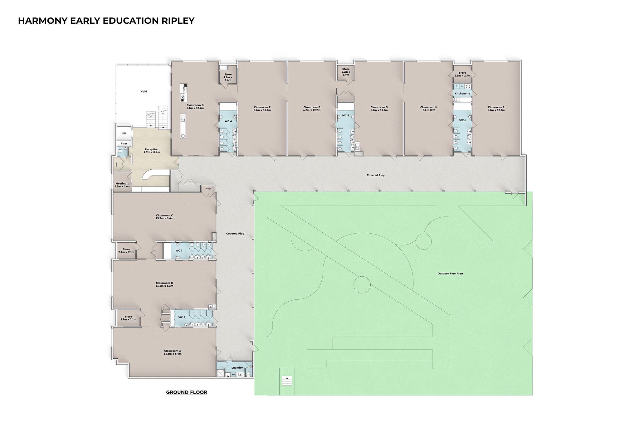 • Actual usable and unencumbered play space for service approval of 653.47m2 internally and 1128.41m2 externally. Total: *1781m2