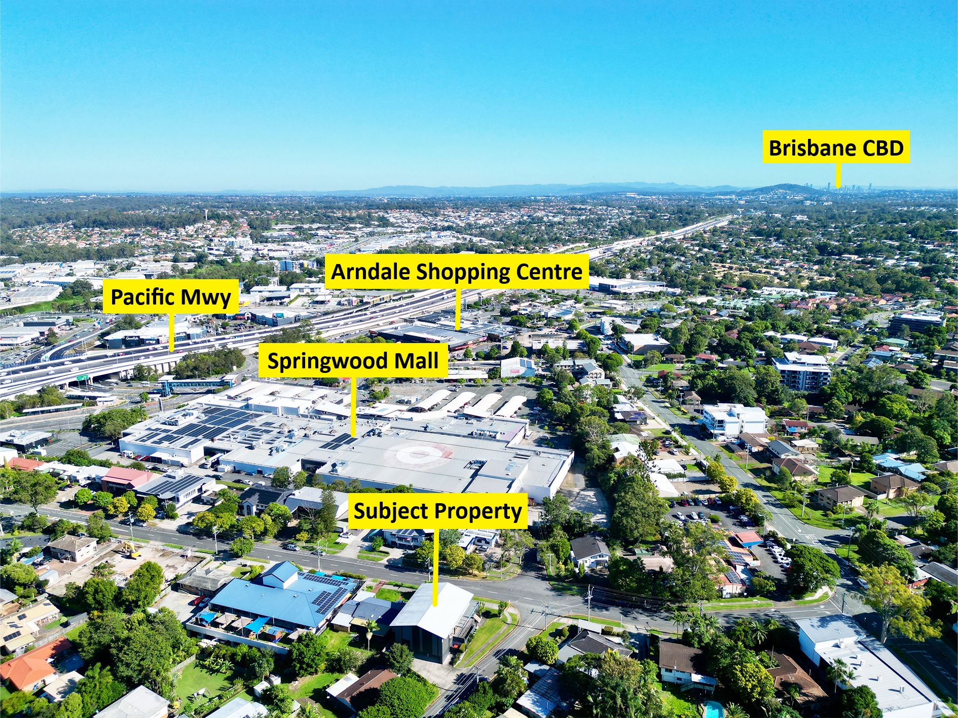 Springwood is located within the Brisbane Region approximately 20 kilometres Southeast of the Brisbane CBD in the Brisbane-Gold Coast corridor with easy access to the Pacific Highway. Springwood hosts a major bus station. The area extends to the Logan/Brisbane city border on Logan Road and along the Pacific Highway and provides links to both the north and south of the area with the Logan Motorway and Gateway Motorway. The precinct includes retail, services, and light industrial businesses.