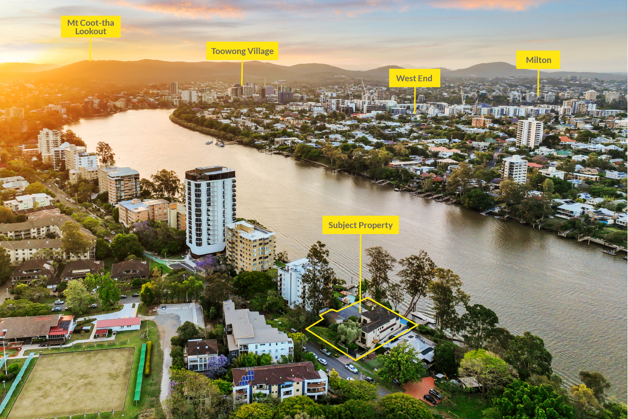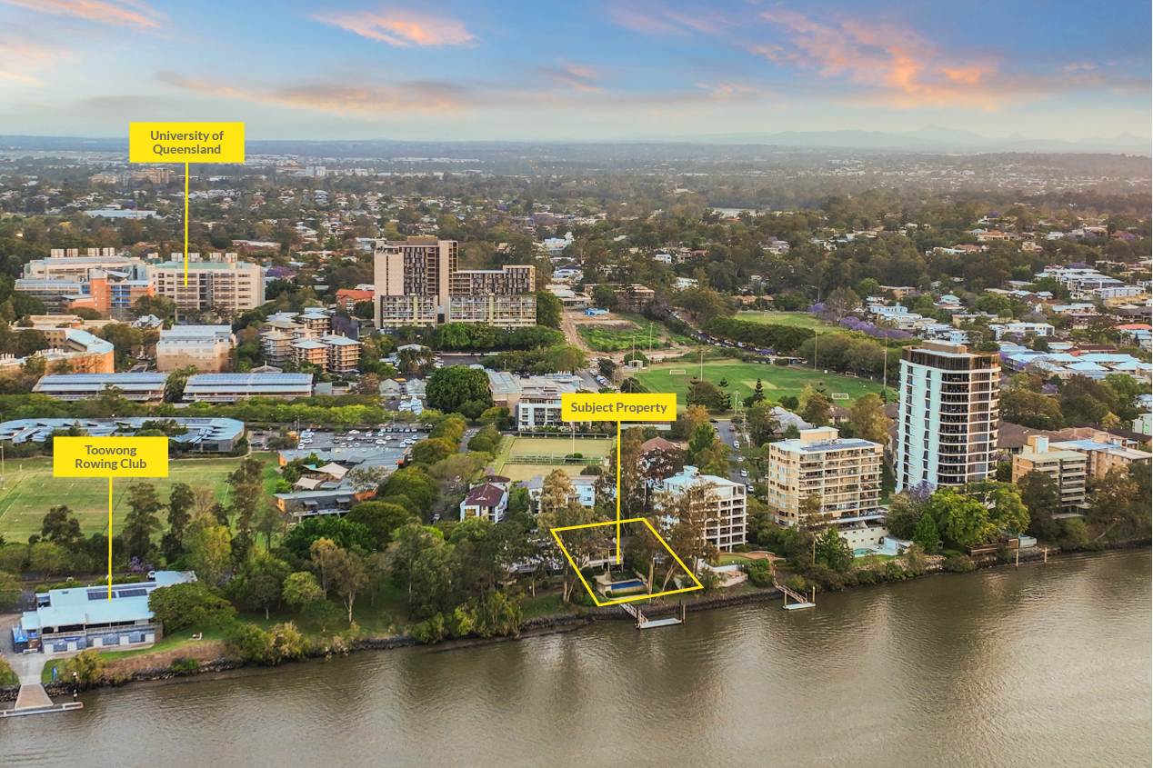 178-180 Macquarie Street is situated in the blue-chip residential suburb of St Lucia just 2.5 kilometres* from the Brisbane CBD. This riverside suburb offers unrivalled amenity, access to public transport and world-renowned educational facilities. The site provides an extremely rare opportunity given its St Lucia address and 30 metres* of absolute Brisbane River frontage. Furthermore, the northerly aspect provides for both direct Brisbane CBD views and a 360-degree aspect across Brisbane's Inner South-West.