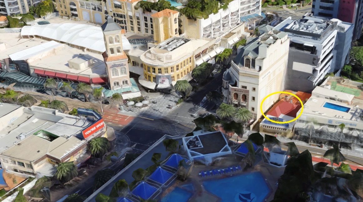 The property neighbours the Clock House Hotel/Tavern and is adjacent to the Mantra on View Hotel. Centrally located in Surfers Paradise, also neighbouring Chevron Renaissance, the subject site has great potential for numerous uses. Such as a new development for a boutique hotel with roof top bar, multi-level offices and retail, student accommodation and entertainment uses.