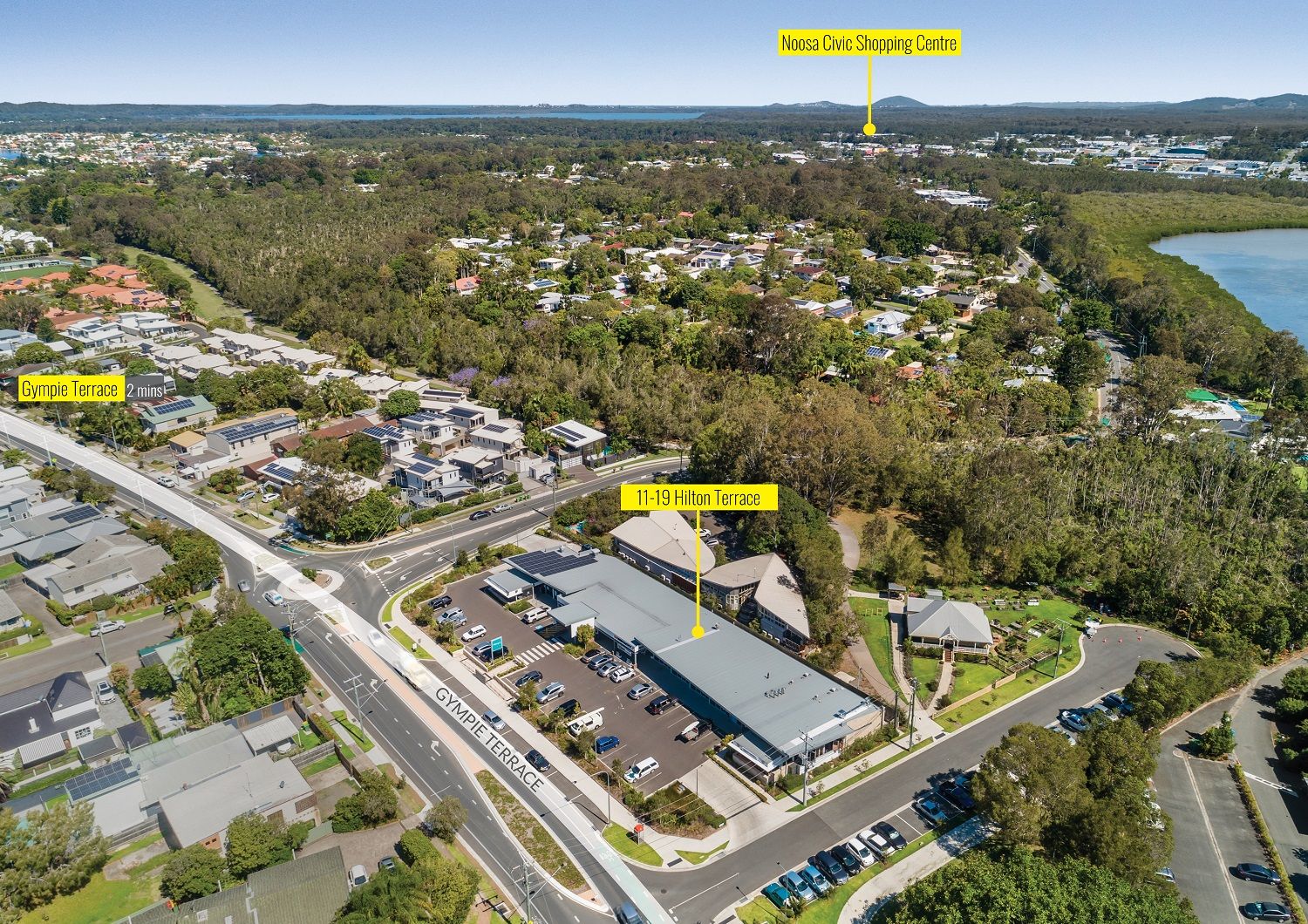 Existing tenants in the development include: Noosaville Fish Market takeaway restaurant, Tewantin Vets, Fringe hair/beauty salon, Bean Theory coffee shop, Lakeside laundromat, The Groomery pet grooming.