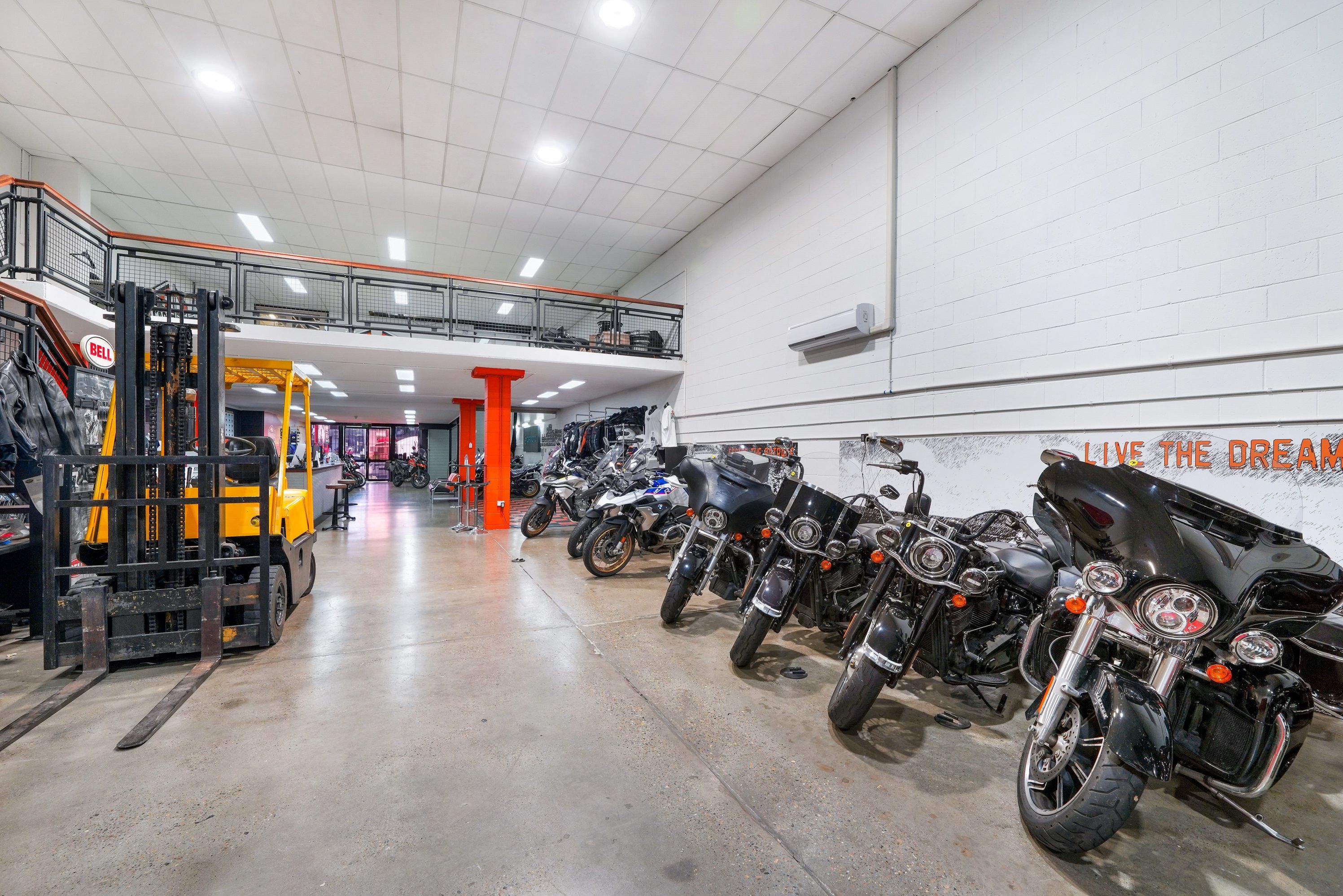 • Balustrade upstairs opens to receive pallets from lower level