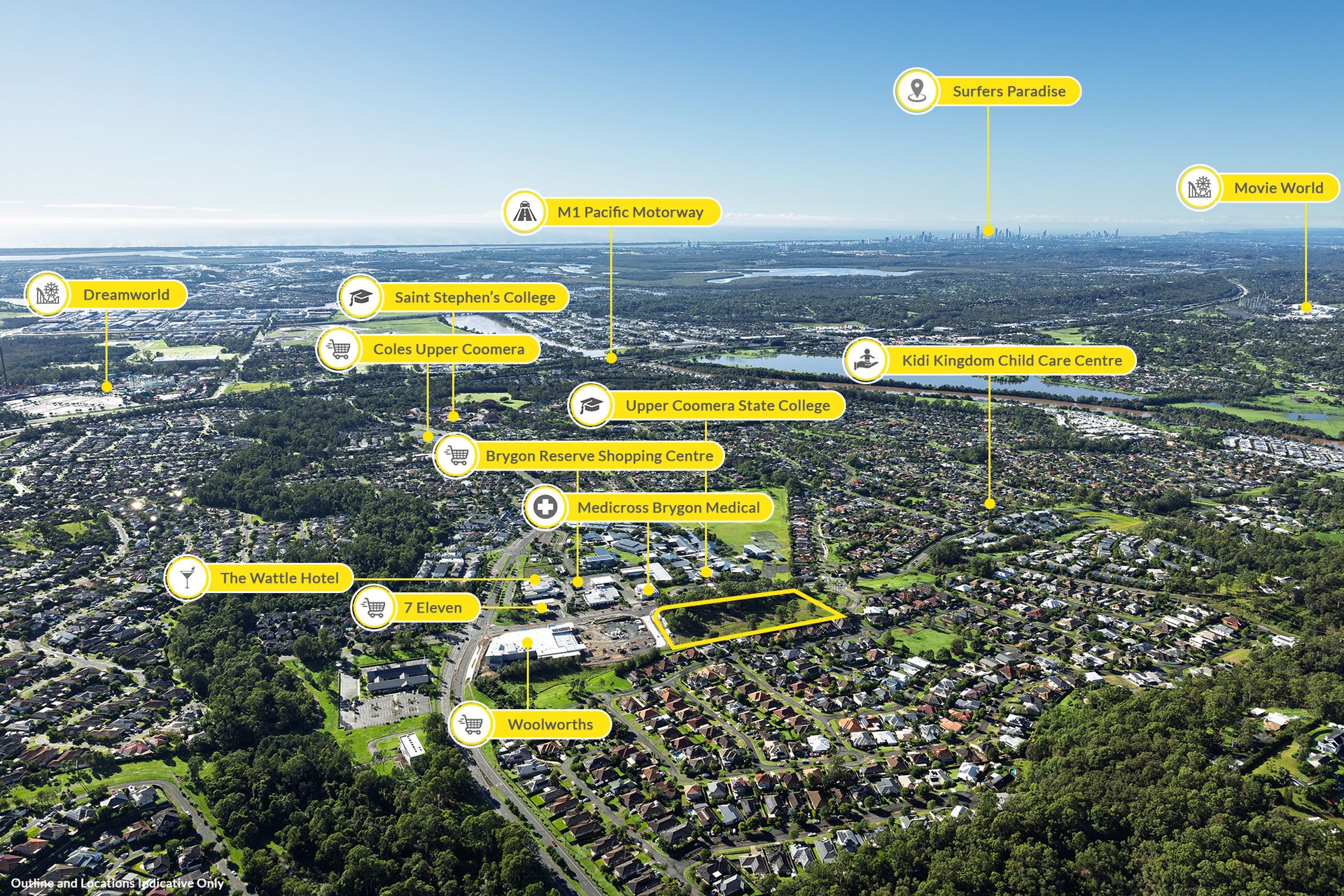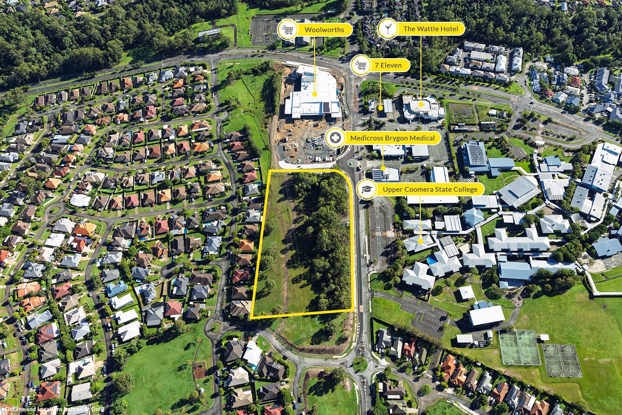 • Opposite Upper Coomera State College P-12, Brygon Medical Centre, Brygon Reserve Shopping Centre and The Wattle Hotel