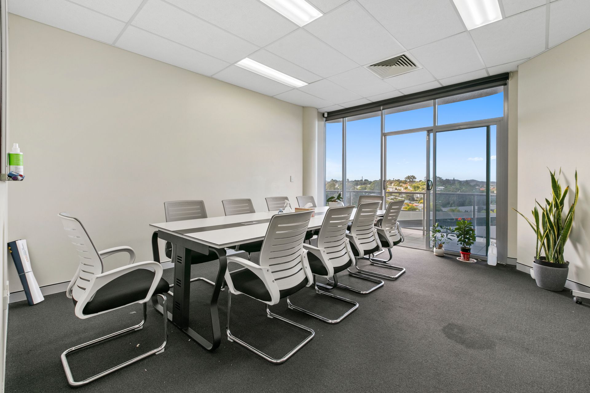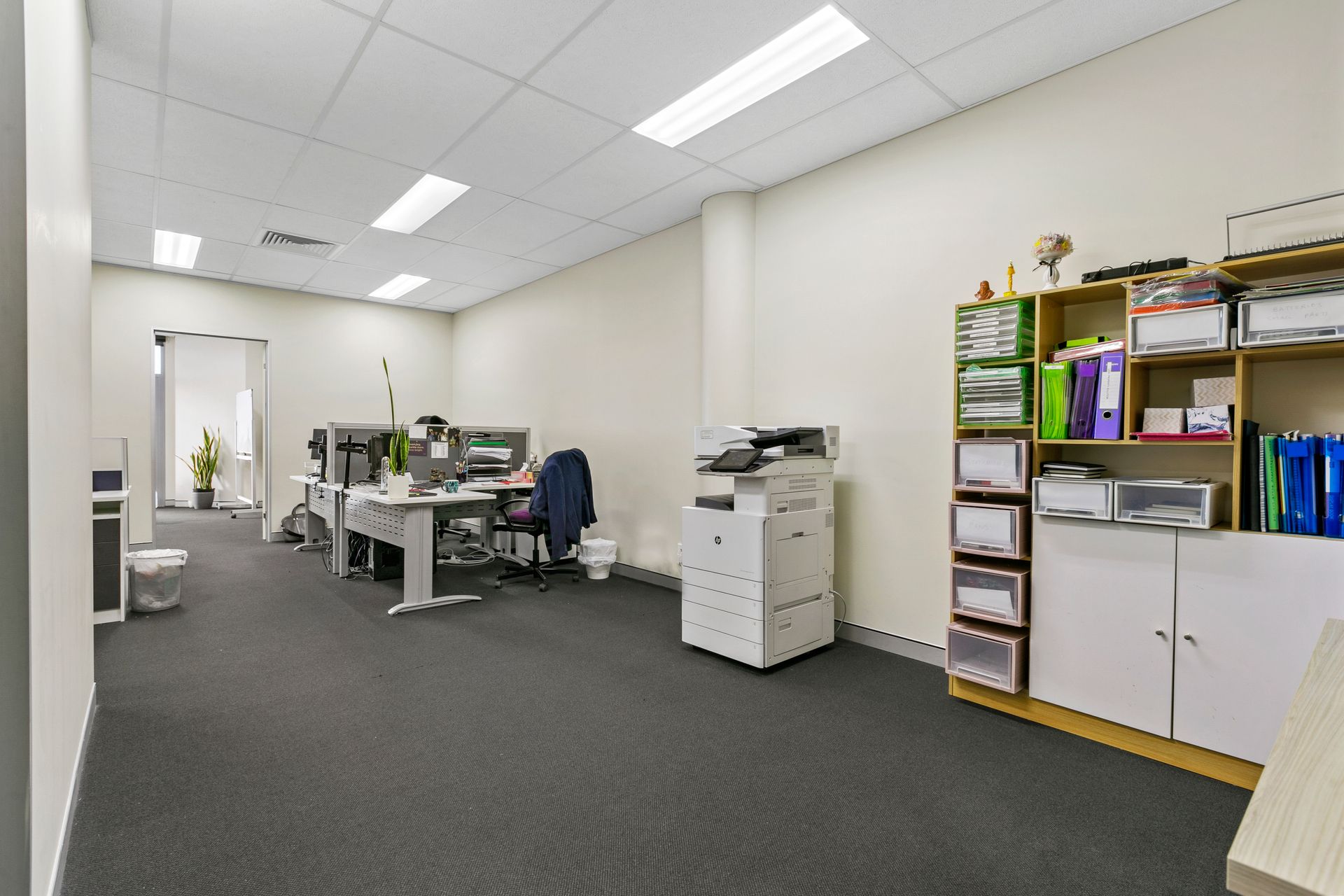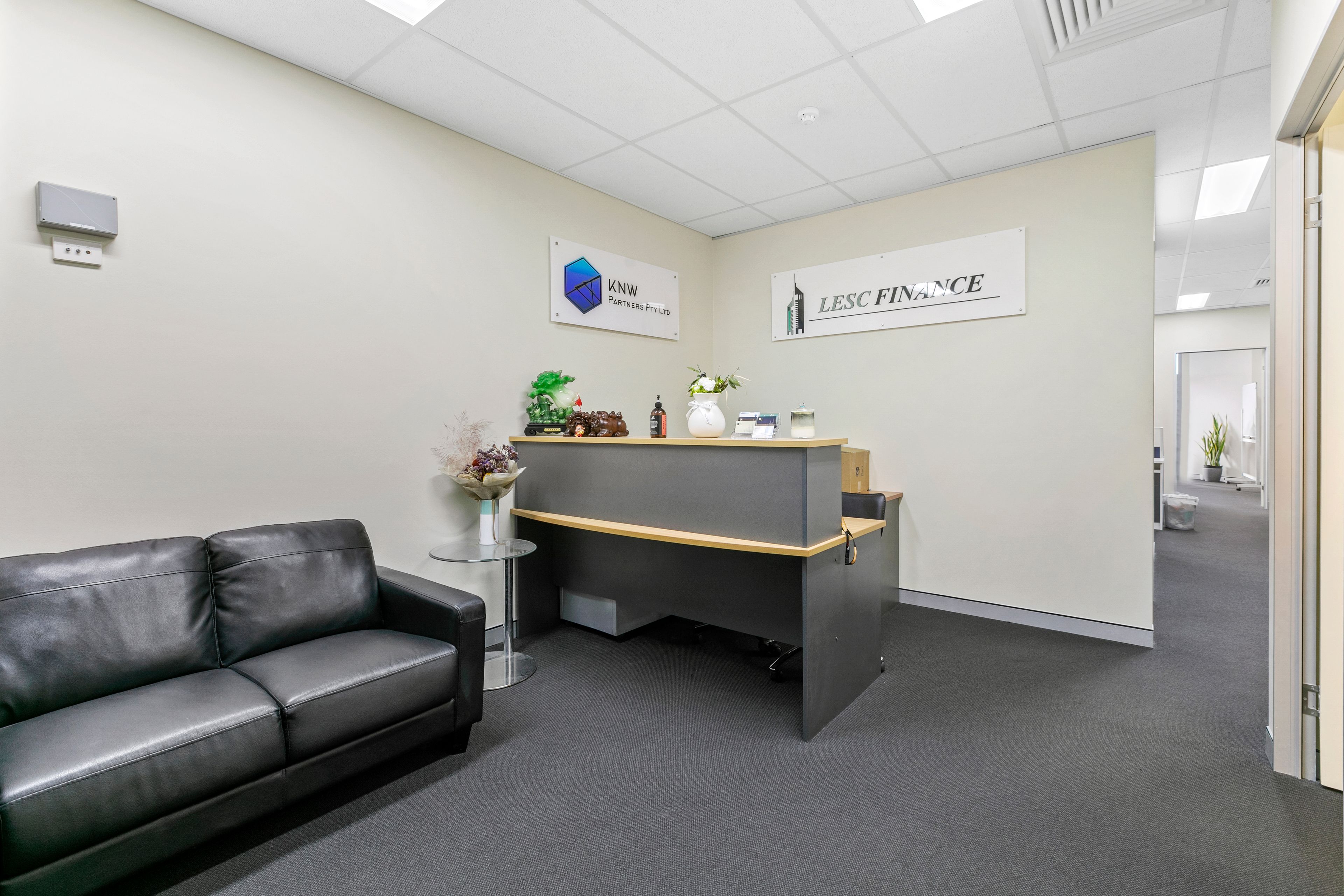 - Reception/waiting area, open plan work area, balcony and lunch room with kitchenette