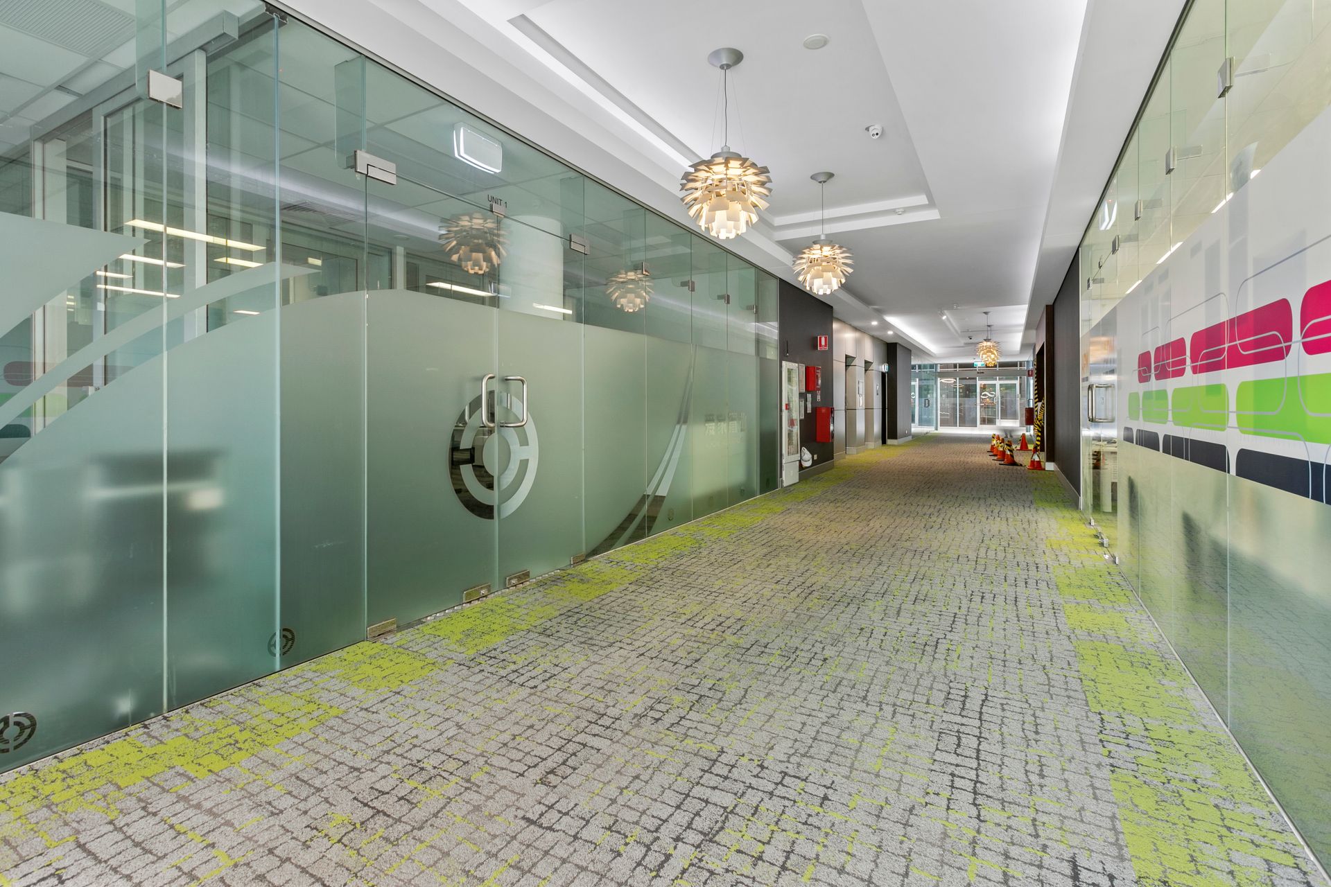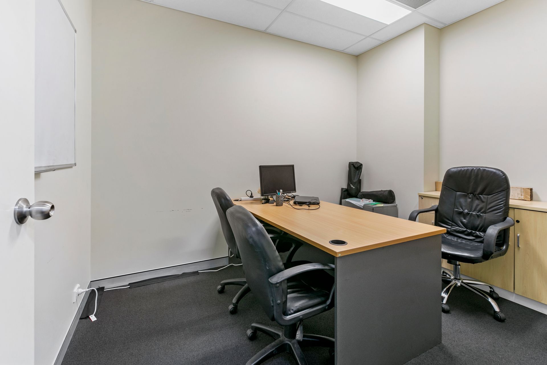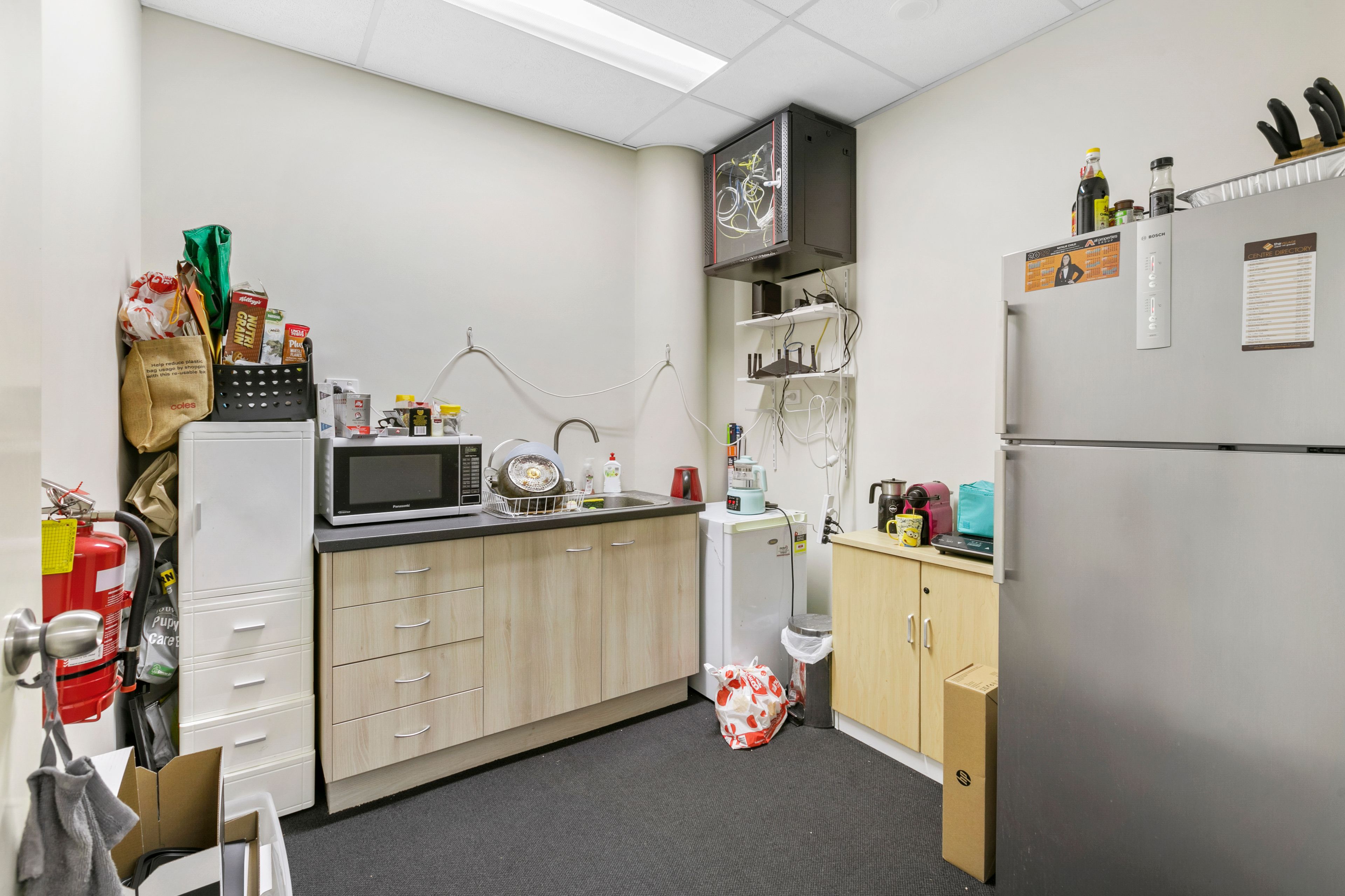 - Reception/waiting area, open plan work area, balcony and lunch room with kitchenette