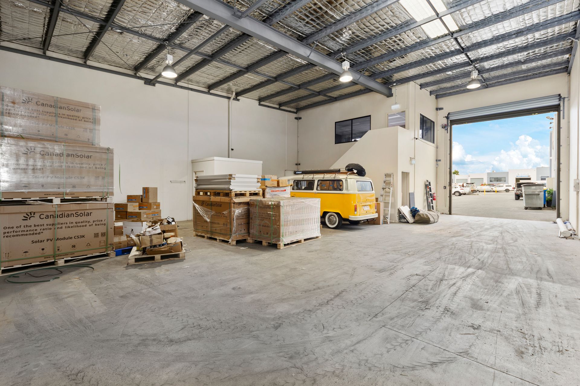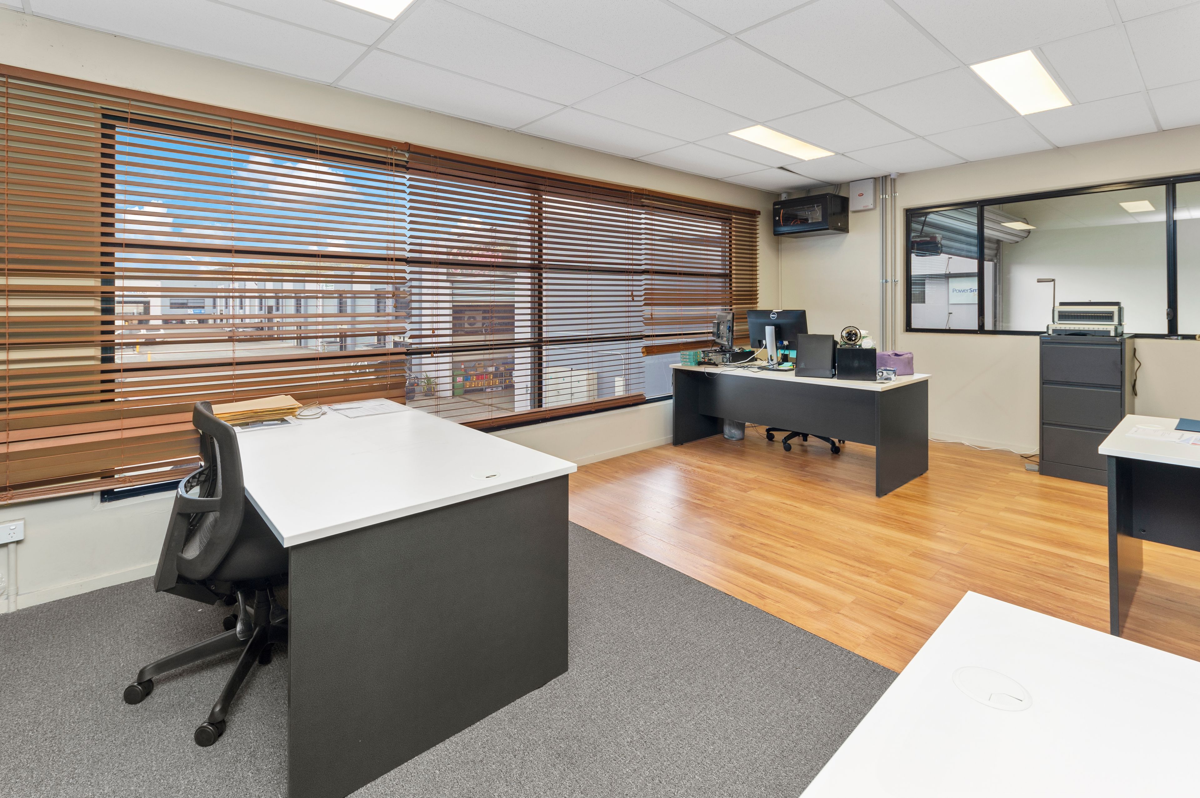 * 3 phase power, hi bay lighting, air conditioned and carpeted office