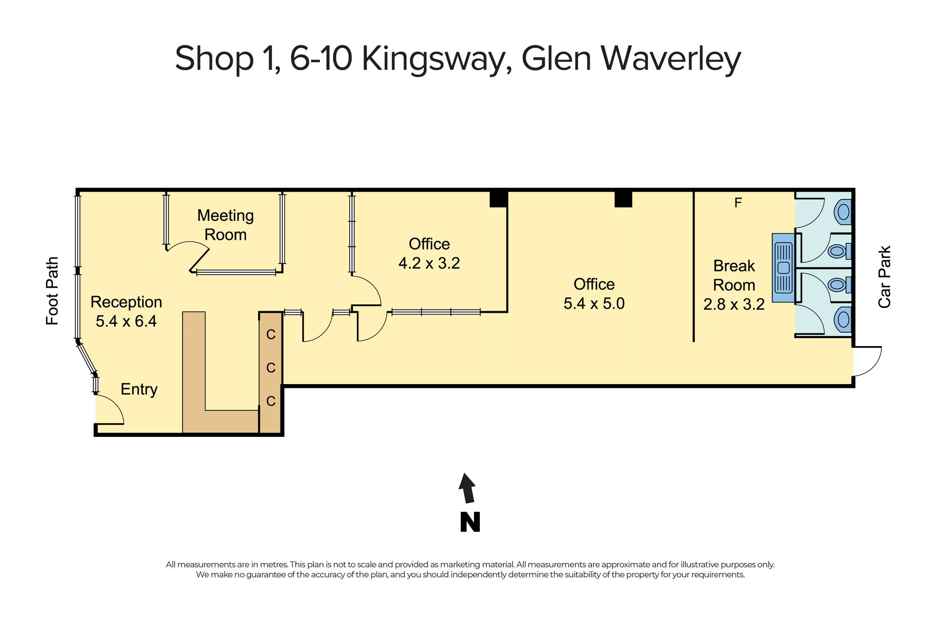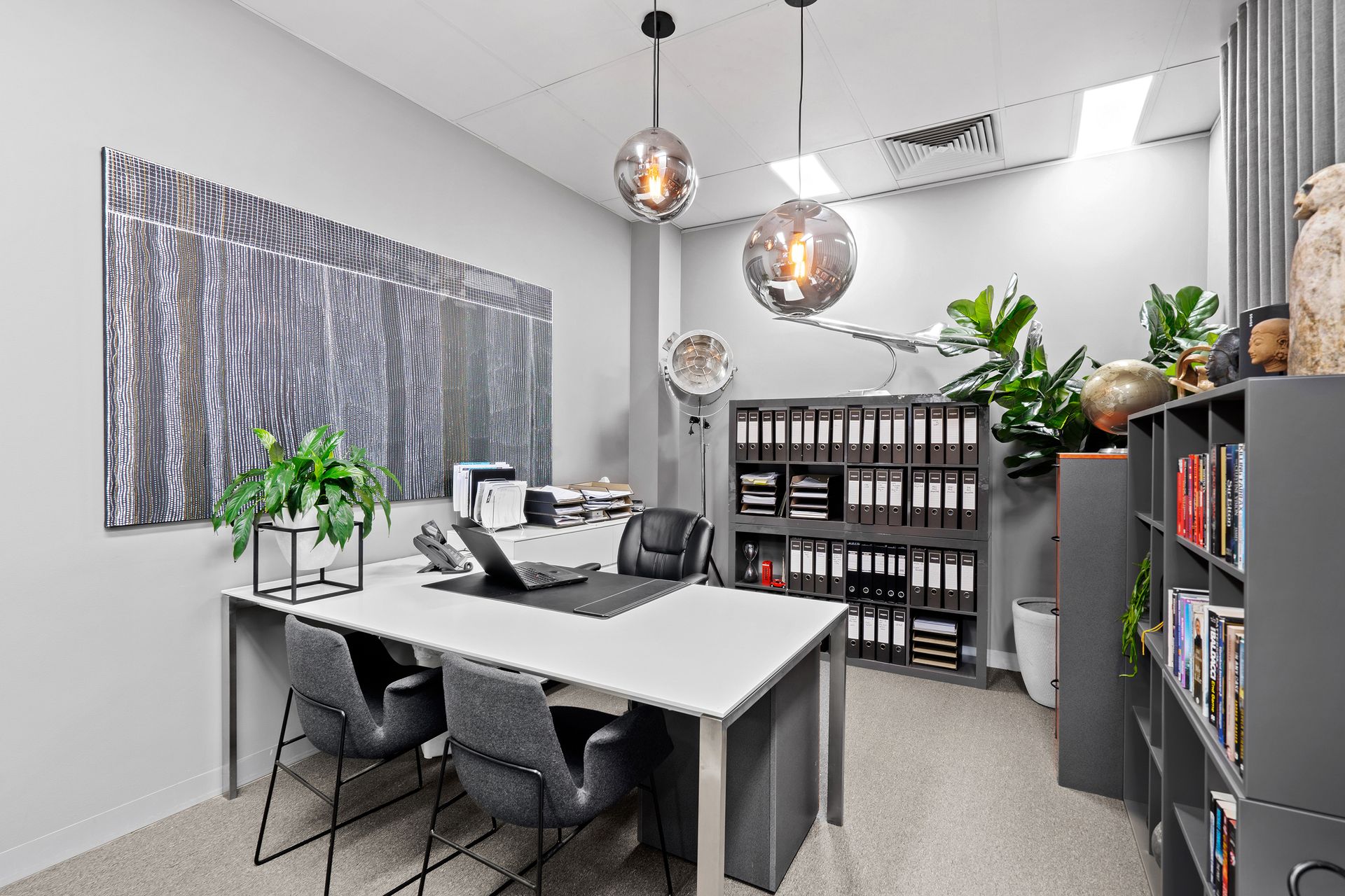 Boasting a glass panelled frontage, a spacious floor plan and a well-fitted interior with great lighting. Comprising a reception area, an enclosed office, kitchenette and powder room. Featuring carpeted flooring, ducted heating and a rear car space.
