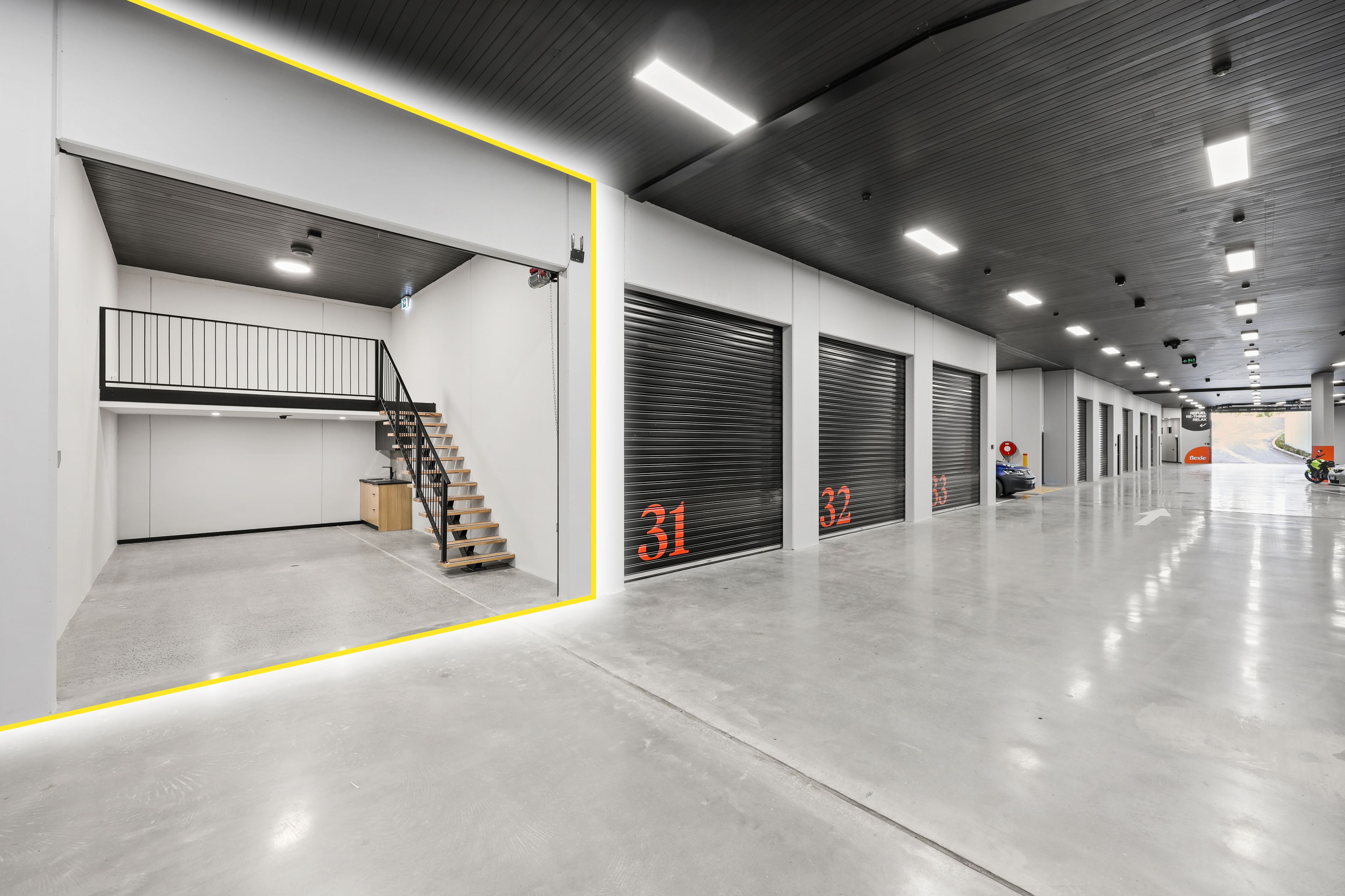 Flexie units are ideal for trades people, e-commerce businesses, working from home professionals, man-cave, and personal use storage. Each unit features high-end fixtures and finishes plus ample communal amenities within the complex.