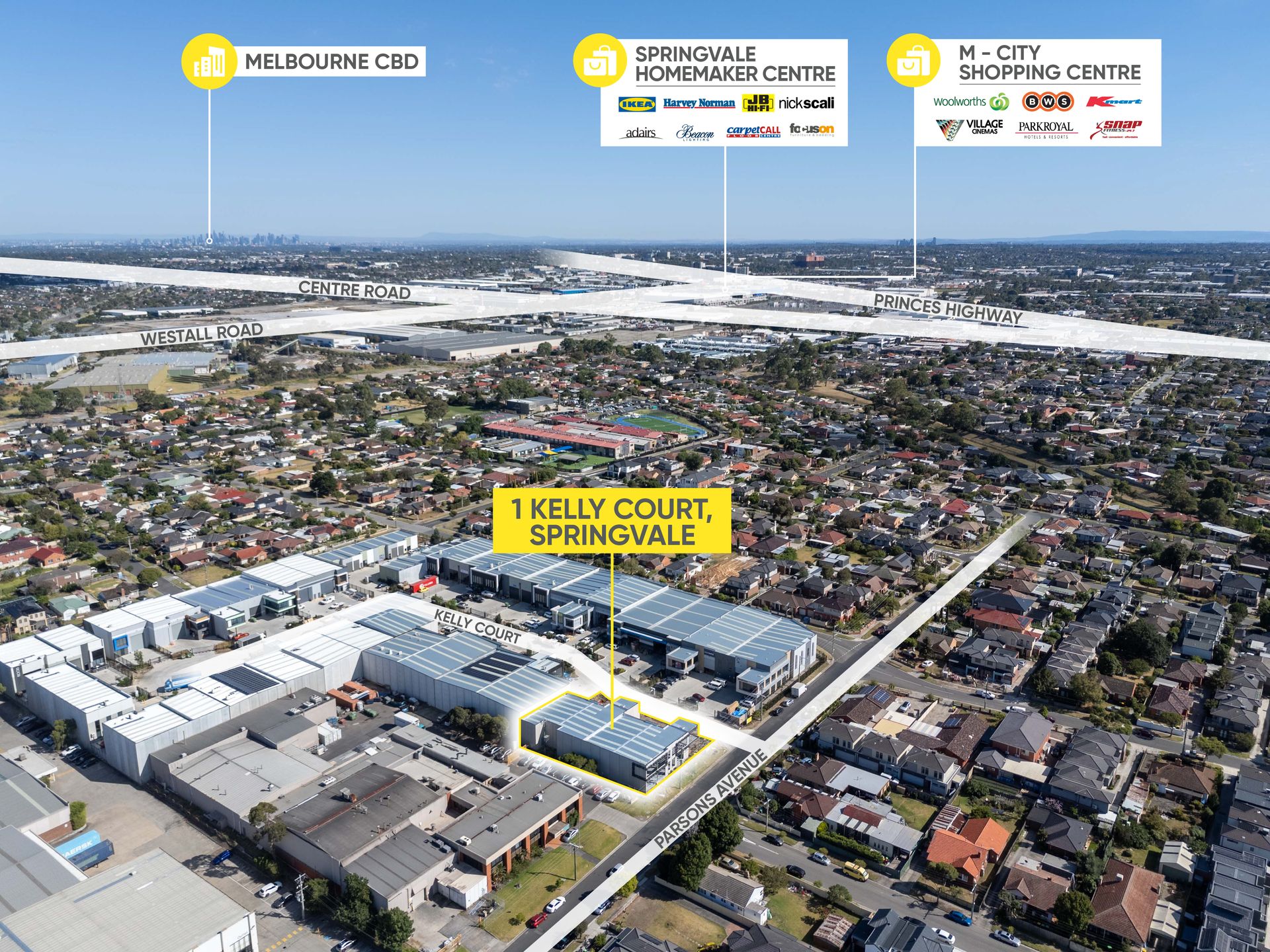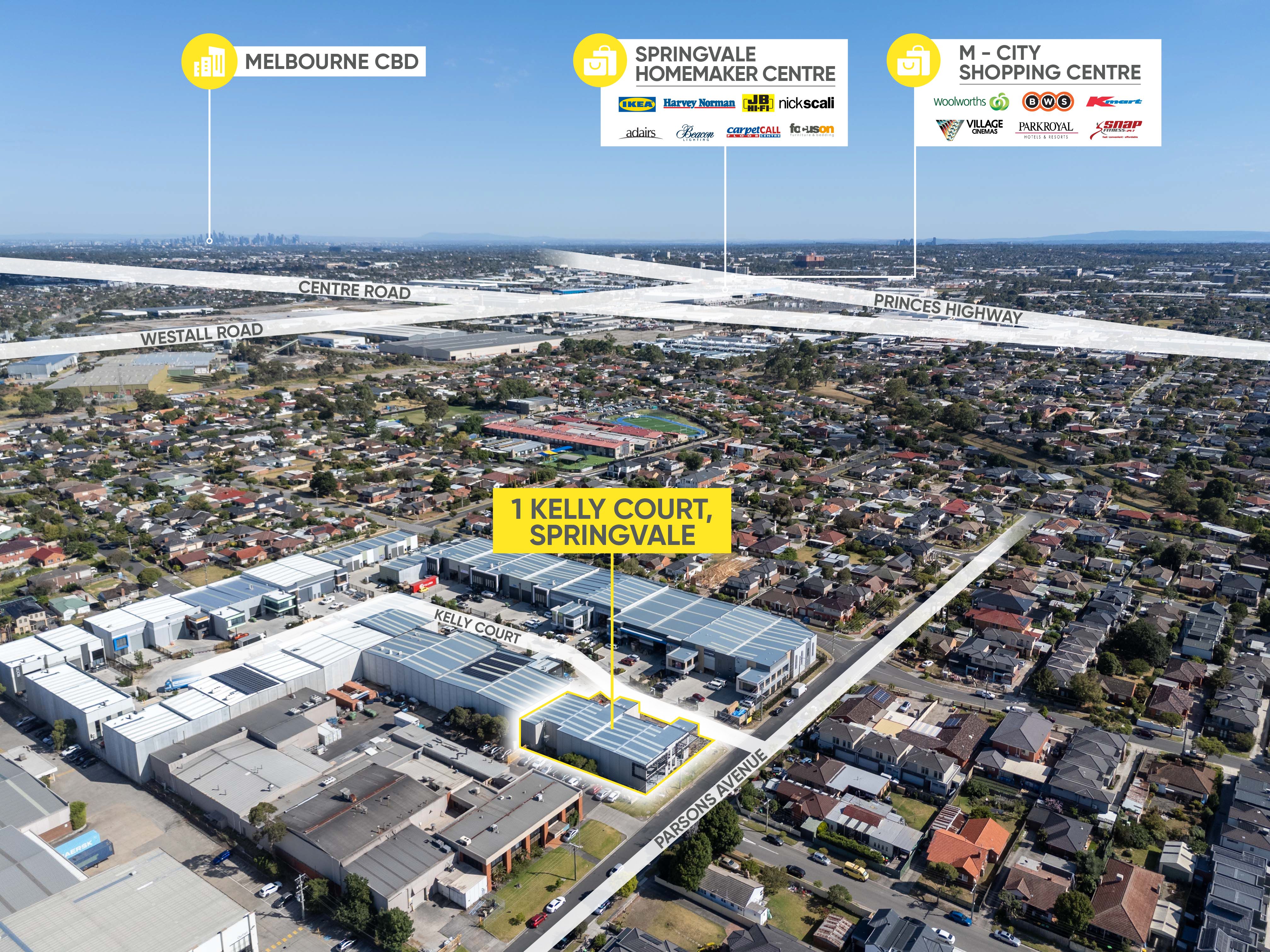 Located just off Springvale Road & only 900m* from Springvale Station, these warehouses are positioned in one of the South-East's most sought after areas and in an ideal location for any business. The properties also benefit from easy access to major arterial roads including Springvale Road, Centre Road, Princes Highway, Westall Road & Heatherton Road.