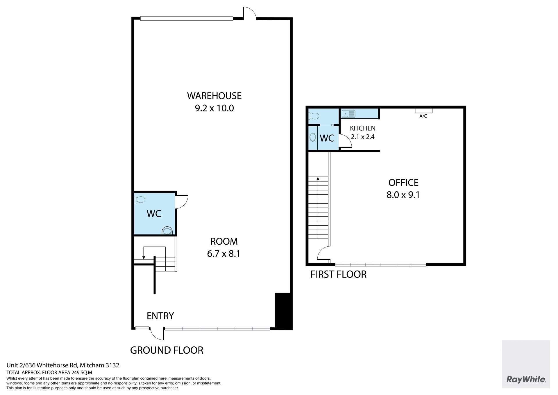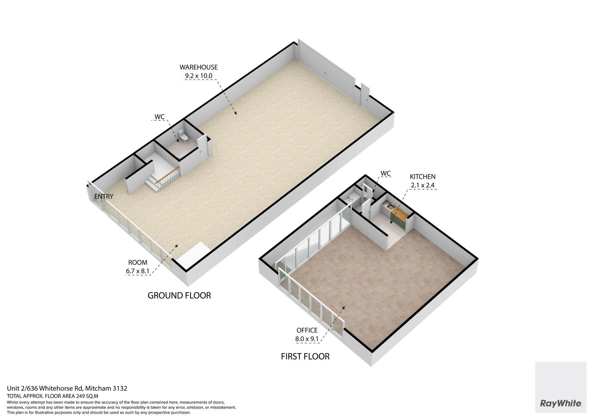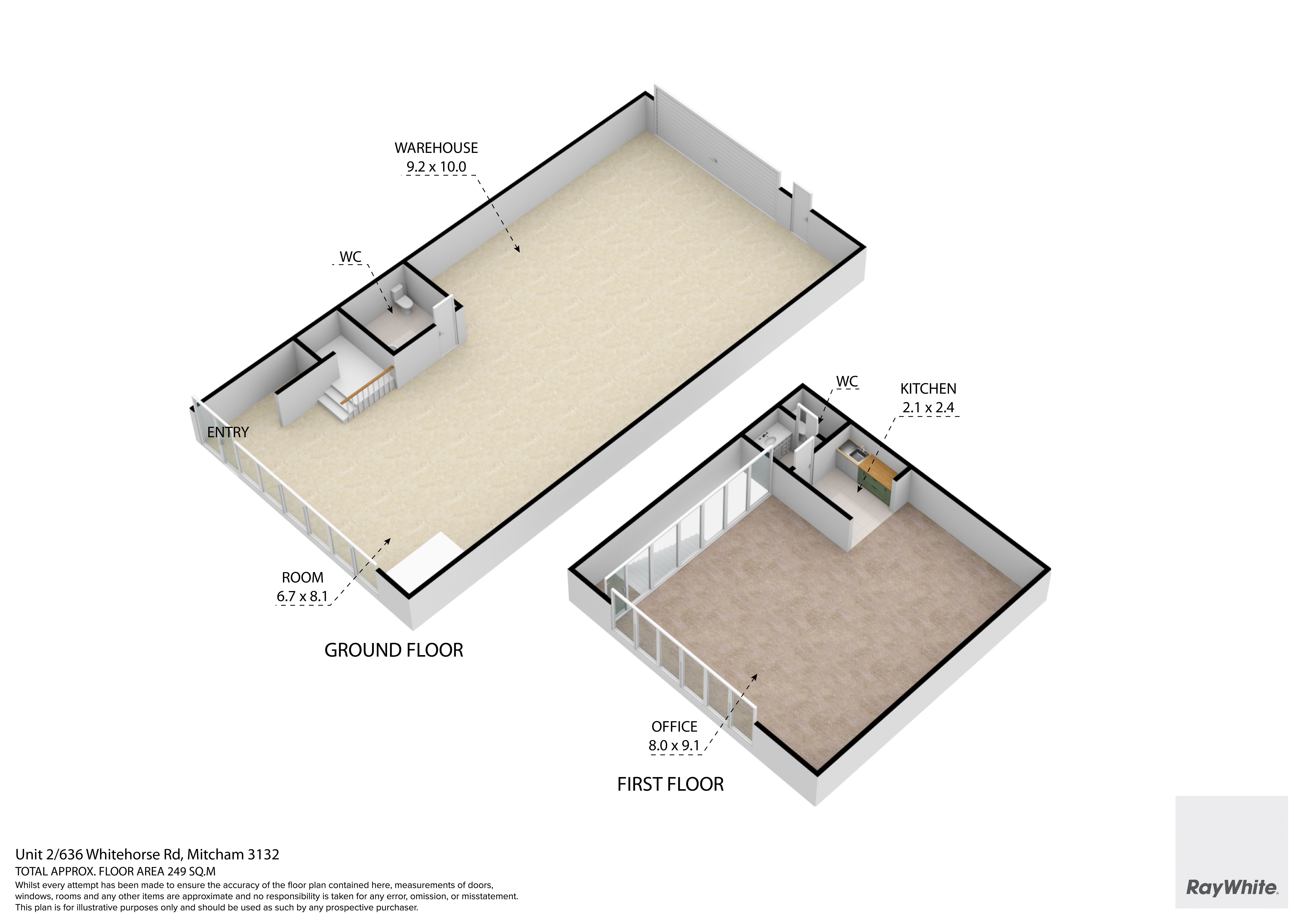 • Includes first floor carpeted office with kitchenette | 77m2*